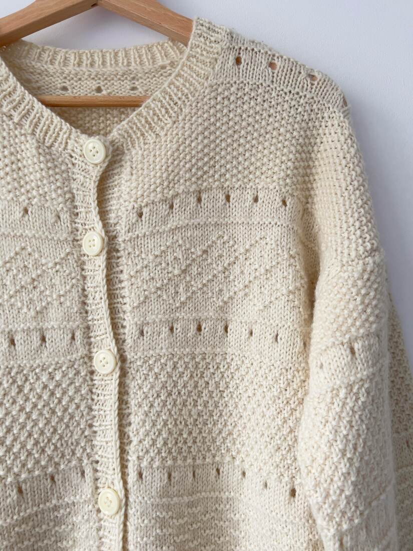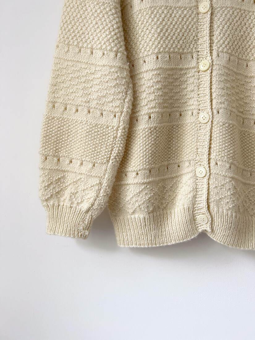 Ręcznie robiony kardigan. Brak metki ze składem, jest to mieszanka wełny. Polecam na XL lub jako overszie. Bez wad.