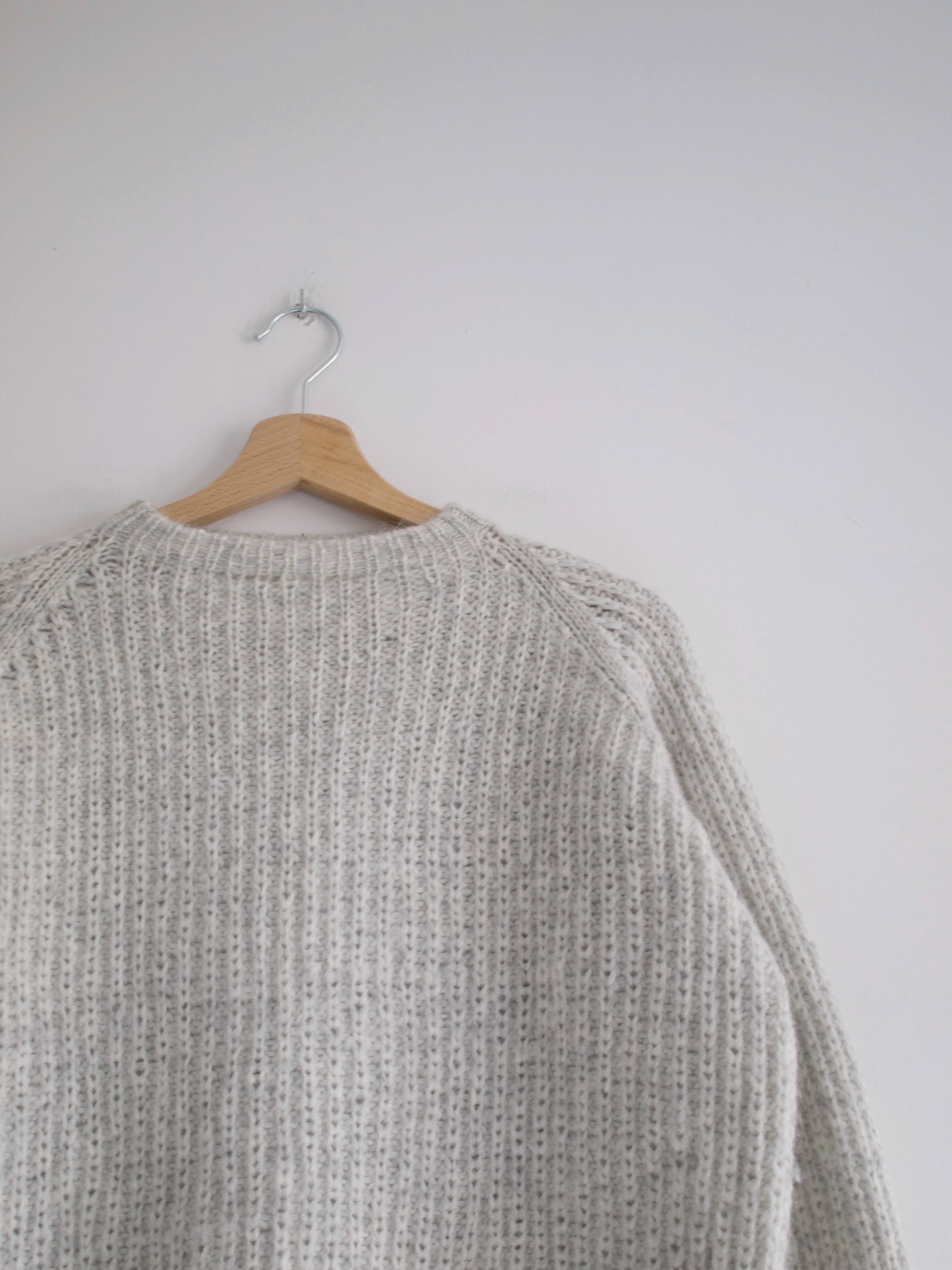 Sweter vintage ze zdobieniem. Brak metki z dokładnym składem, ale jest to angora, może nawet w 100 %. Sweter bardzo miękki i nie gryzie. Ma obszerniejsze ramiona, zdjęcie na xs-ce.