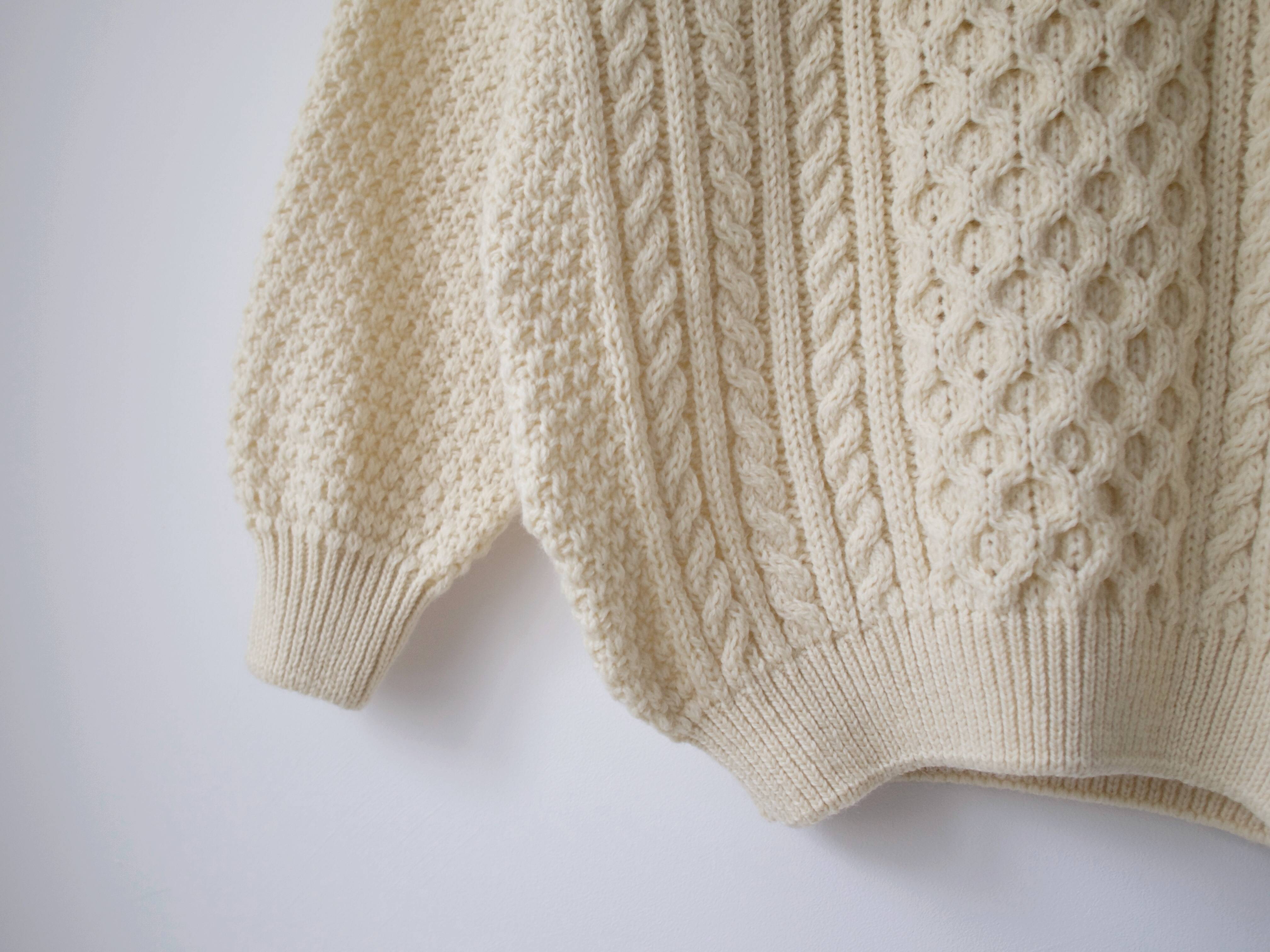 Unikatowy wełniany sweter vintage w kolorze kremowym. Wyprodukowany w Szkocji, 100% wełna z pierwszego strzyżenia.