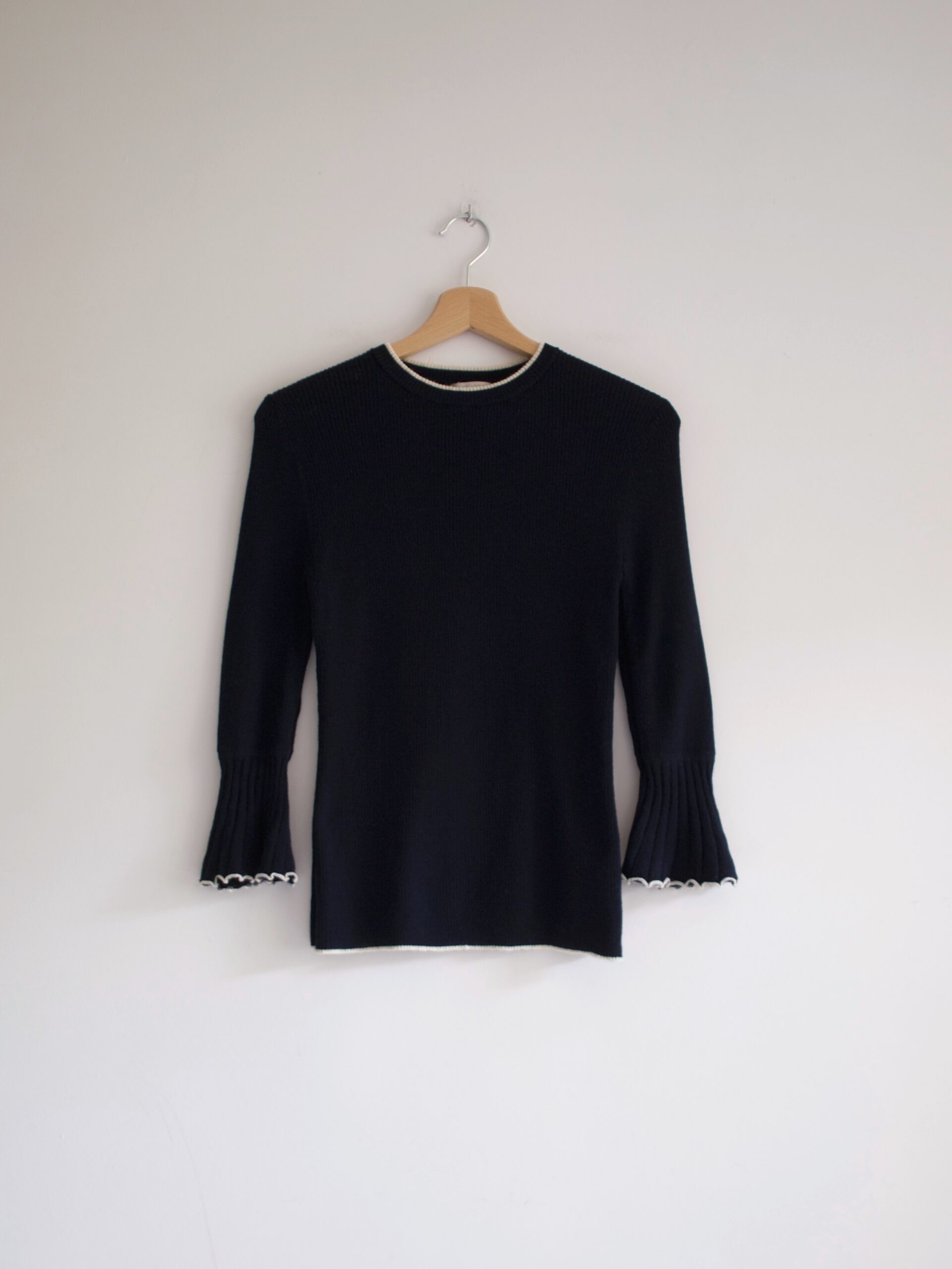 Sweter ekskluzywnej brytyjskiej marki Hobb’s. Kolor to głęboki granat. Rozmiar: XS-S Skład: 100% merino Stan: idealny Szerokość w klatce 36 cm Długośćcałkowita 60 cm