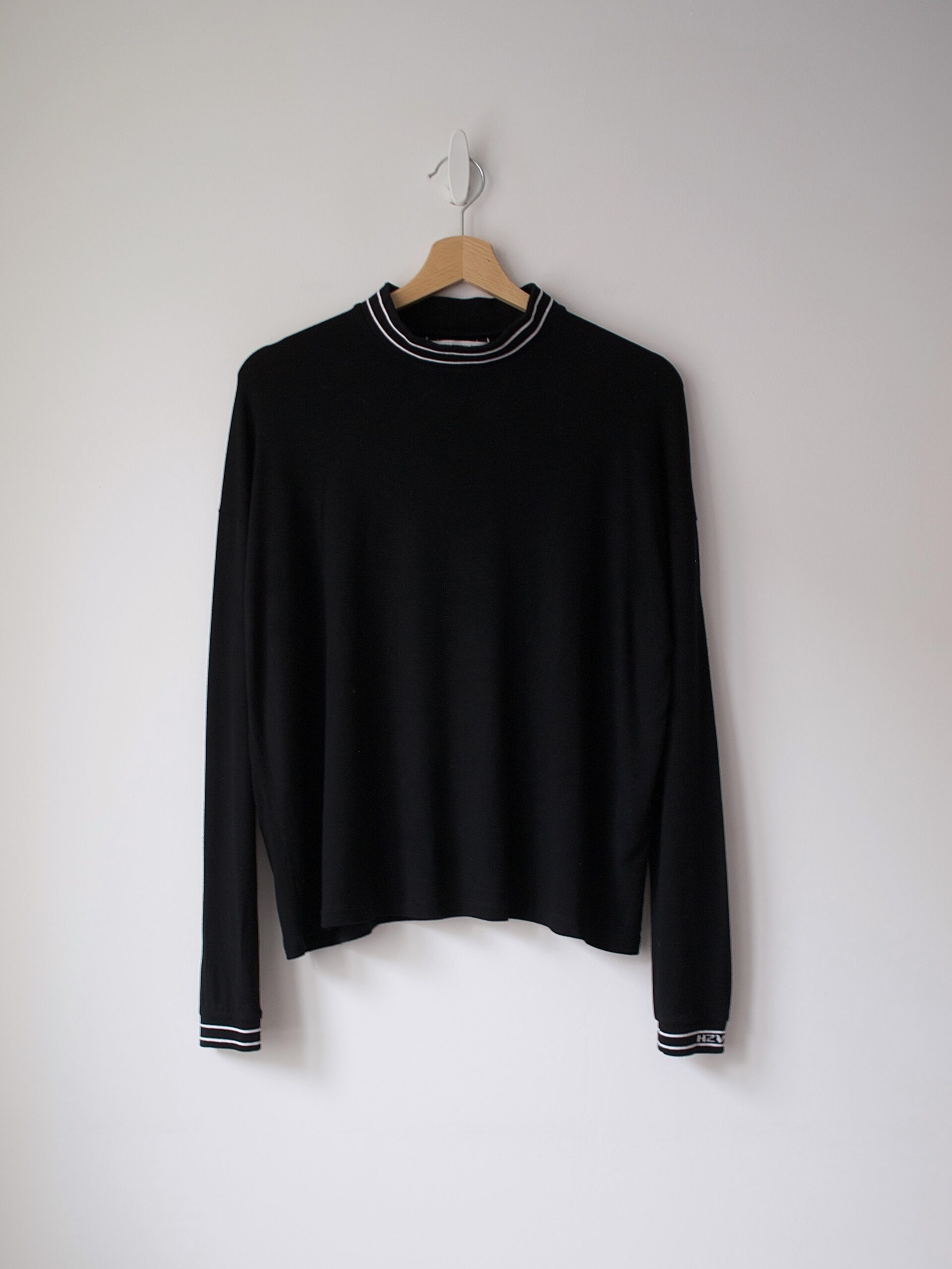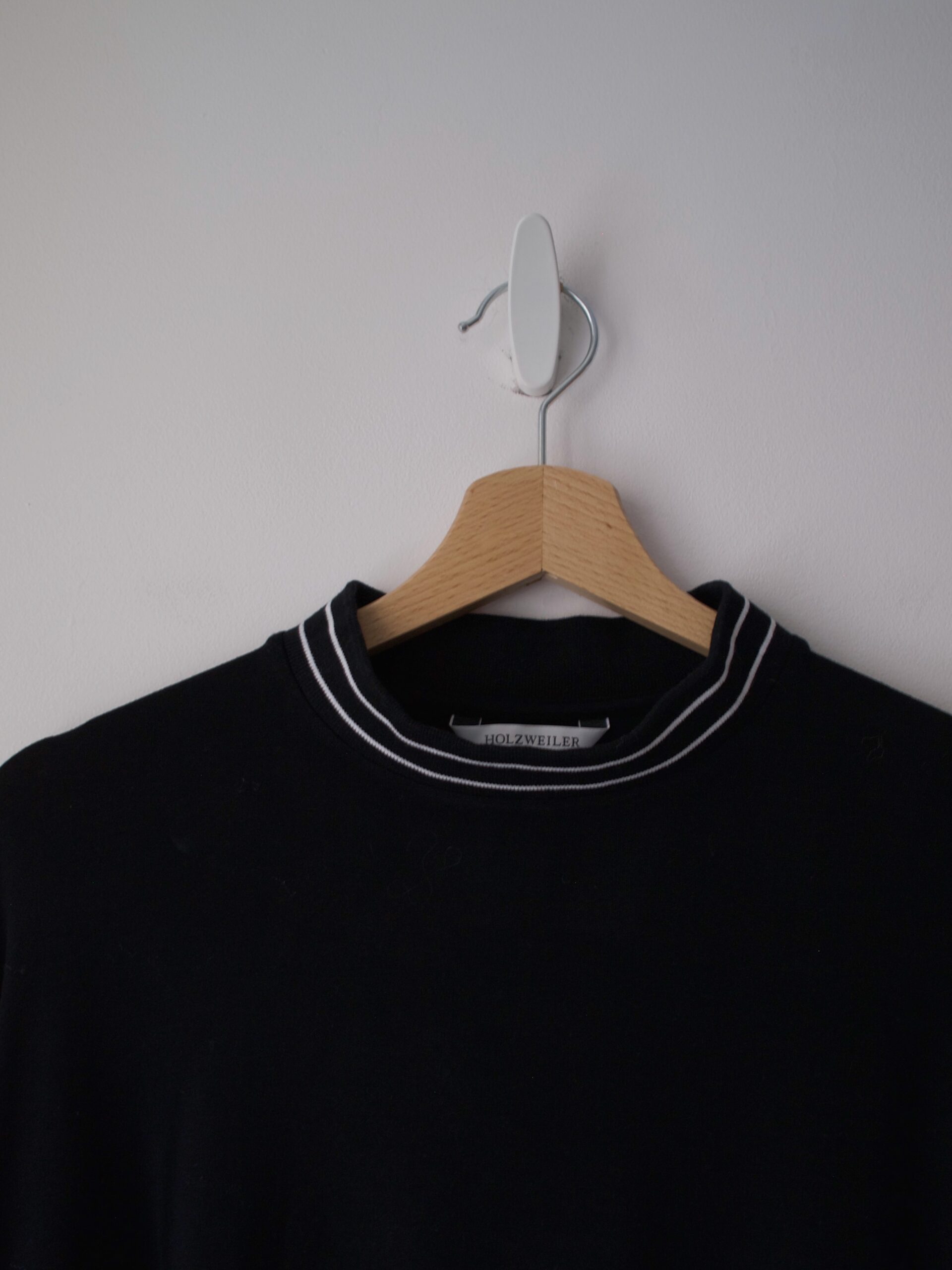 Bluzka ekskluzywnej norweskiej marki Holzweiler. Jeden rękaw sygnowany logiem marki. Wyprodukowana w Portugalii.