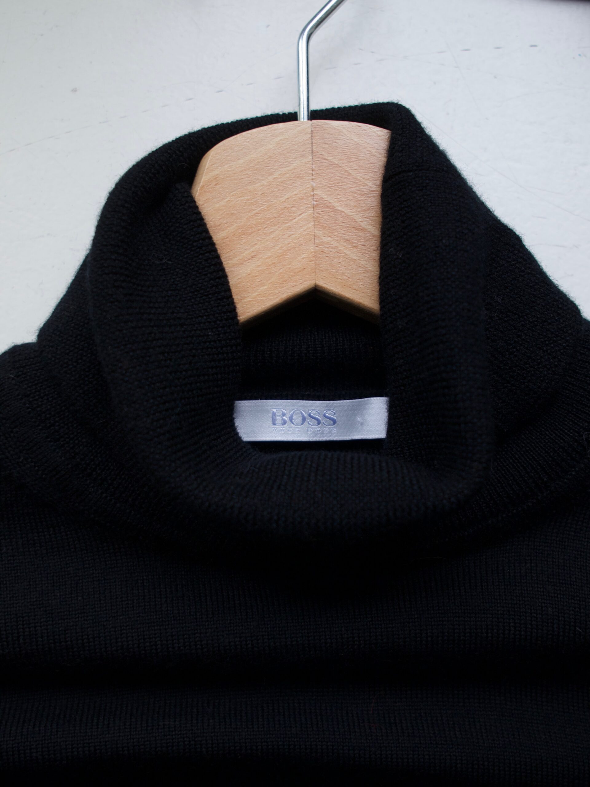 Golf domu mody Hugo Boss, w 100% wykonany z cienkiej i niegryzącej wełny.