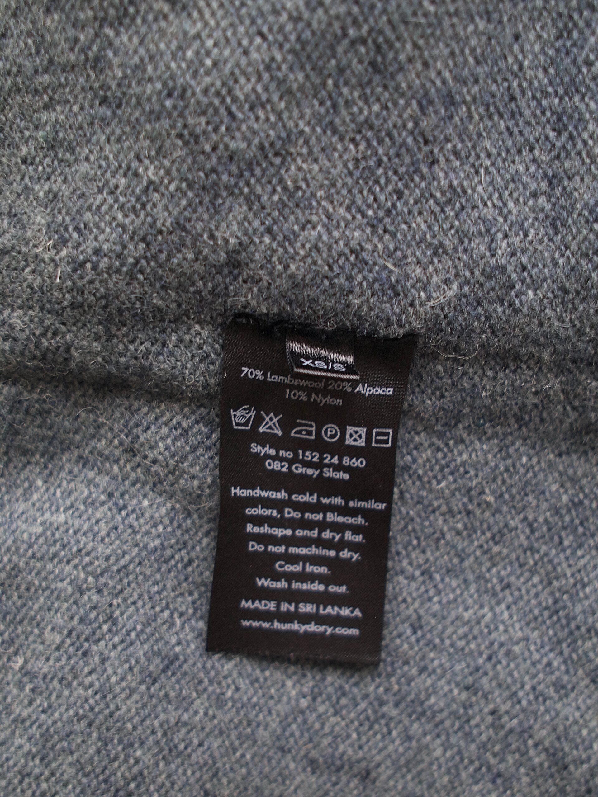 Rozmiar z metki: XS/S, uniwersalny Skład: 70 wełna jagnięca, 20% alpaka, 10% nylon Stan: bez wad Długość całkowita 66 cm