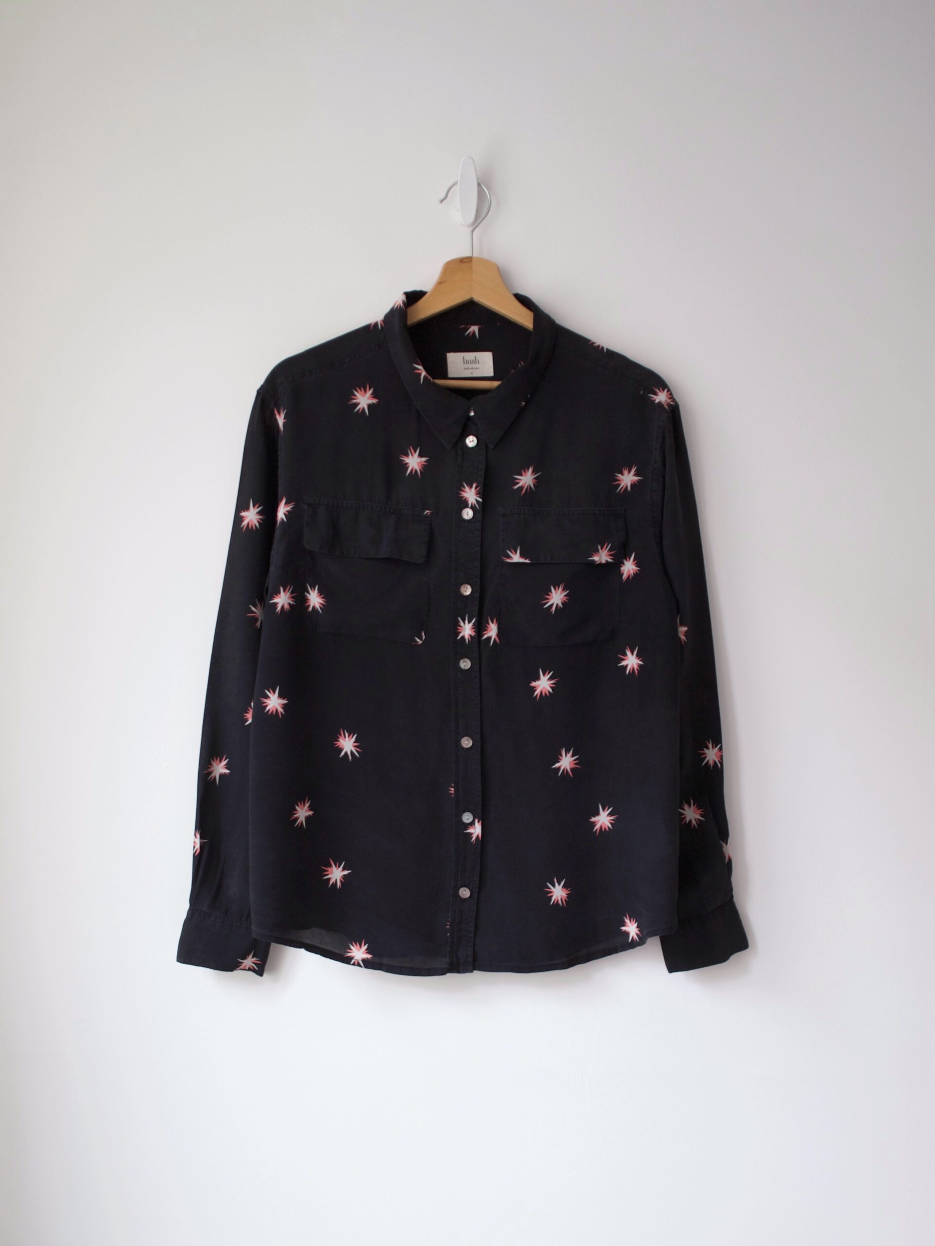 Klasyczny sweter M&S z dekoltem w serek. Skład to 100% kaszmir, bardzo dobry stan, jest minimalnie sfilcowany, nie jest to zauważalne, po prostu jest trochę sztywniejszy.