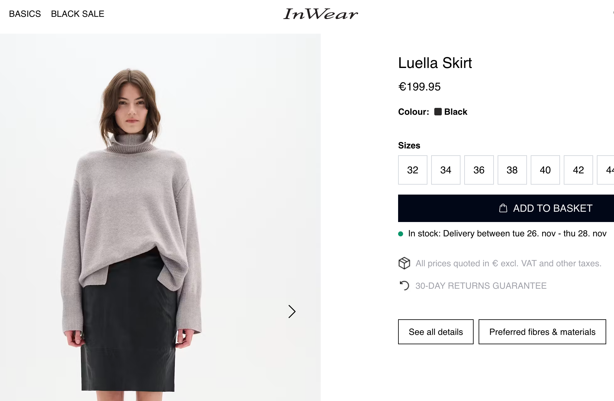 Spódnica skandynawskiej marki InWear, premium linia. Model Luelle, dostępny na stronie w cenie 199,95 eur, czyli ponad 860 zł. Spódnica wykonana z miękkiej skóry, bez podszewki, w pasie gumka dla lepszego dopasowania.