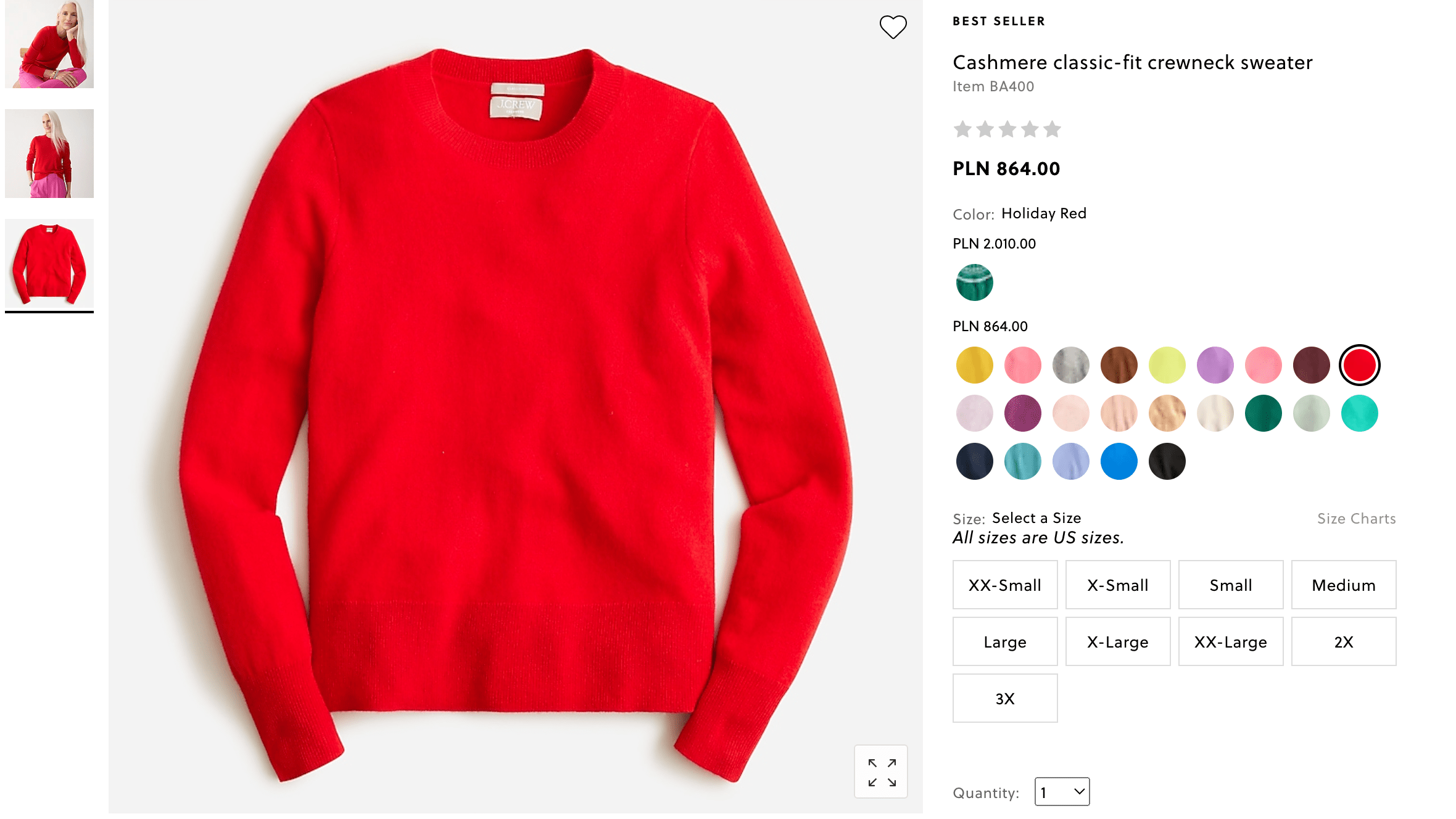 Sweter w stylu basic ekskluzywnej marki J. Crew. W 100% wykonany z kaszmiru, cena tego modelu na stronie marki to 846 zł.