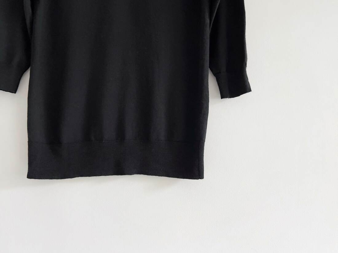 Sweter jest wykonany w 100% z wysokogatunkowej miękkiej wełny dziewiczej, made in UK. Brak etykiety z rozmiarem, ma nieco obniżone ramiona, będzie dobry na m/l, lub jako overize. Modelka ma 175 cm wzrostu. Idealny stan.