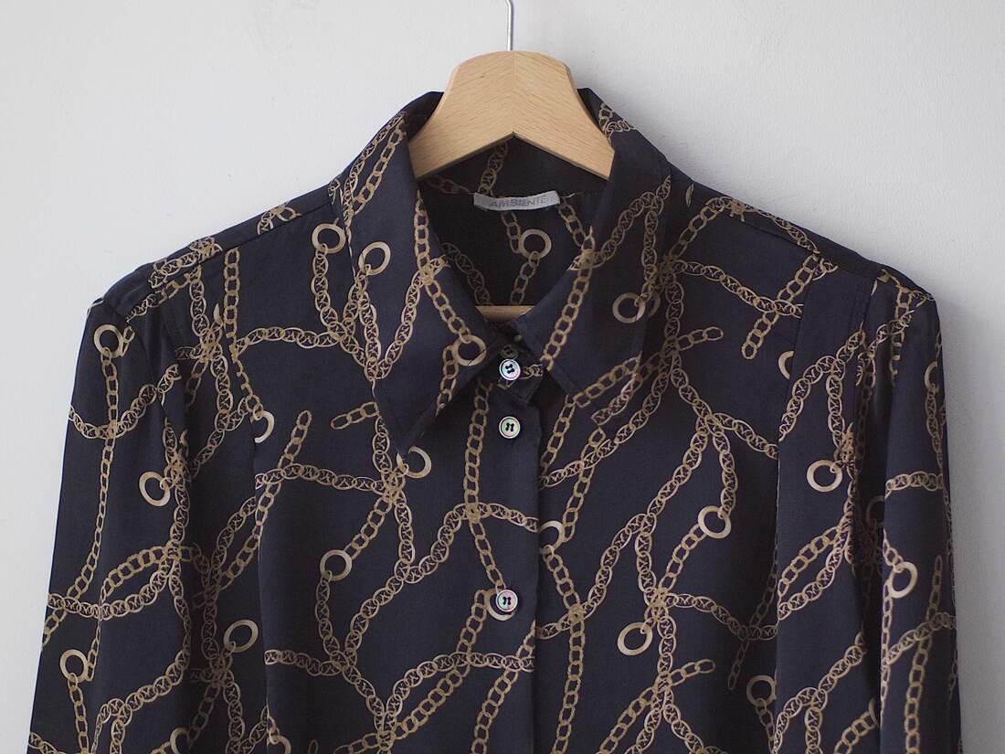 Gładka jedwabna koszula we wzory. Rozmiar z metki 44, bez wad.
