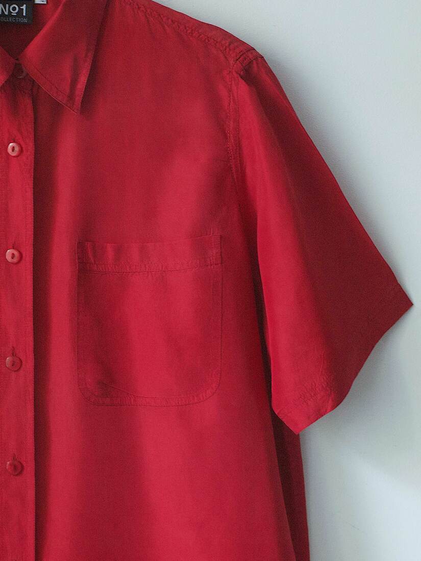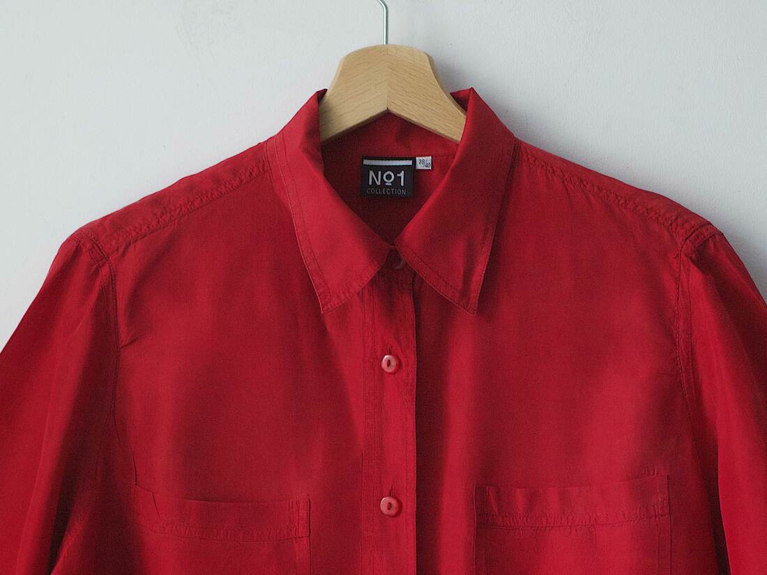 Jedwabna koszula vintage . Rozmiar z metki 38/40, bardzo dobry stan. Koszula ma ślady prania, charakterystyczne dla jedwabiu, nie są bardzo widoczne w noszeniu.