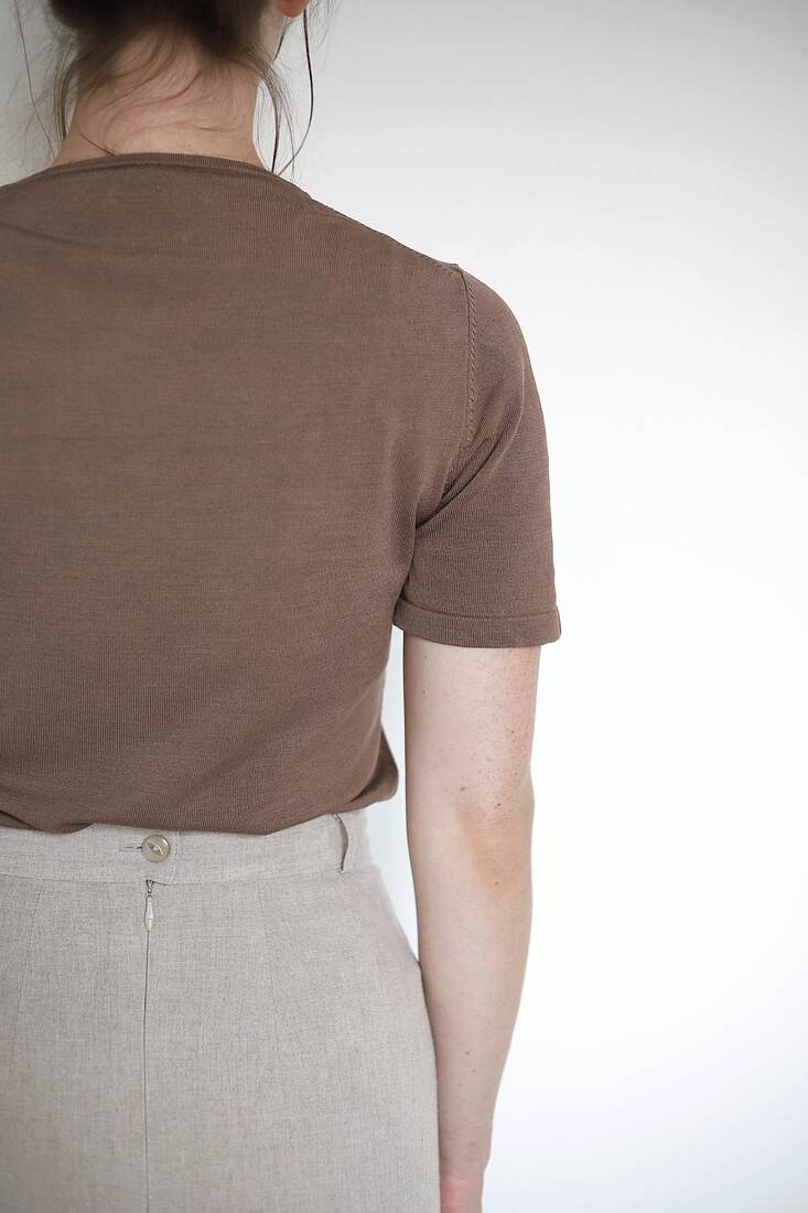 Jedwabna bluzka vintage w czekoladowym kolorze. Zależnie od preferowanego dopasowania będzie pasować na XS-S-M (będzie bardzie obcisła).Bez wad.