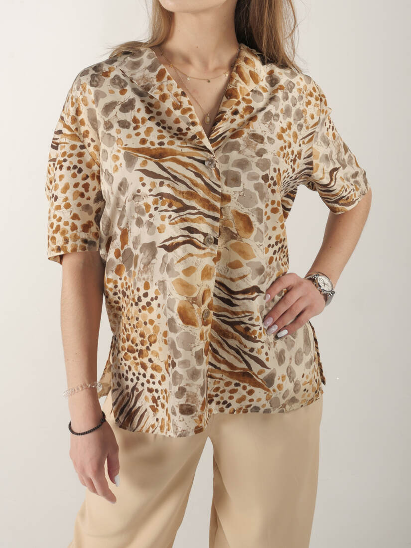 Koszula w w zwierzęce wzory, zapinana na guziki z masy perełkowej. Rozmiar z metki L, w rzeczywistości nie jest bardzo duża. Idealny stan.