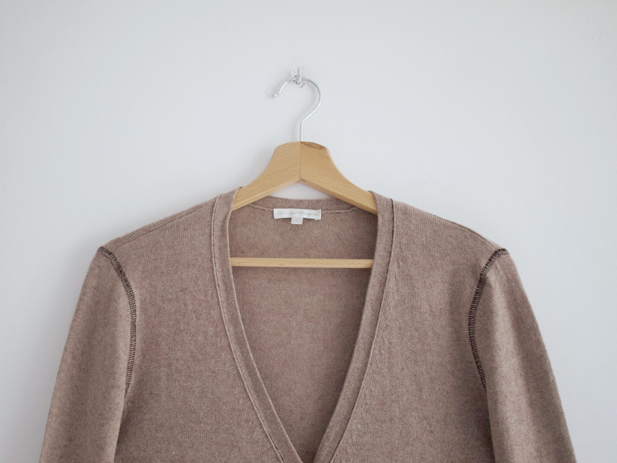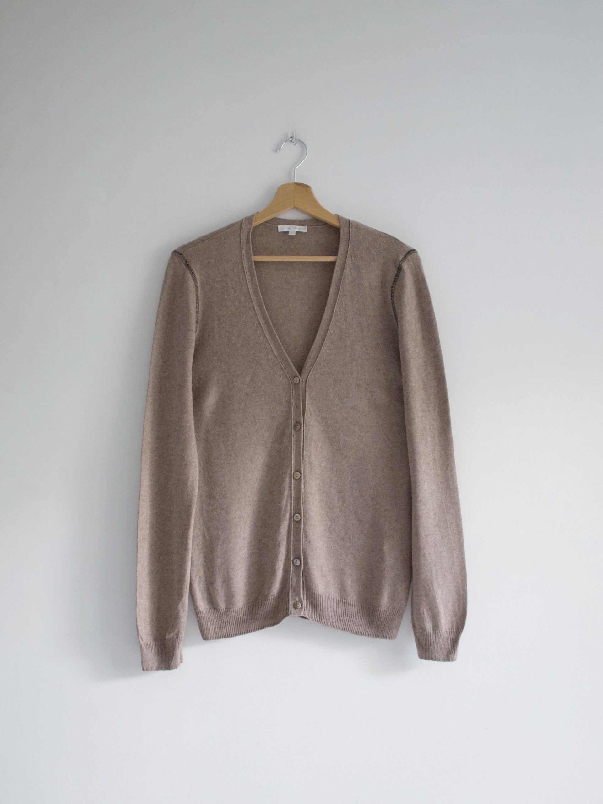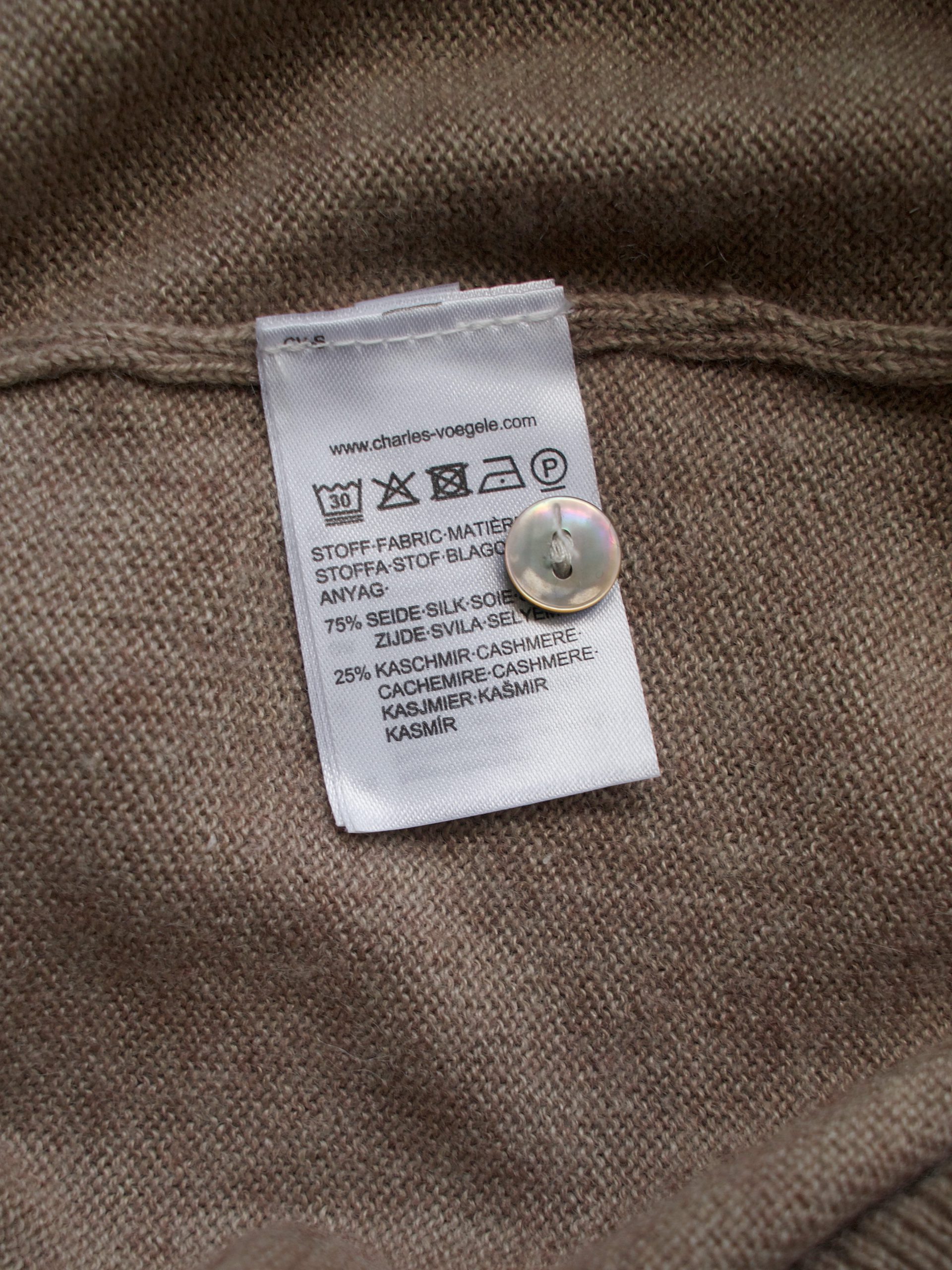 Kardigan vintage wykonany z bardzo miłej w dotyku mieszanki jedwabiu i kaszmiru. Rozmiar z metki S, bez wad.