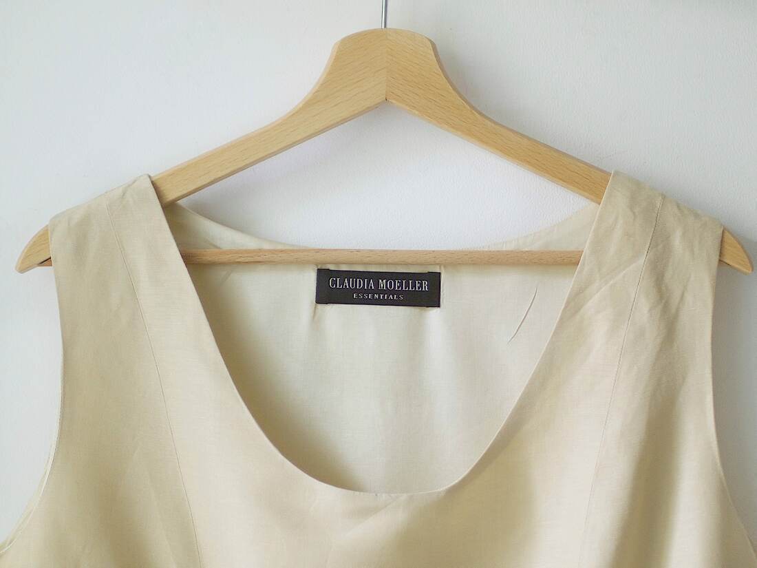 Beżowy top vintage zapinany z boku na guziki. Idealny skład: 67% jedwab, 33% len. Brak metki z rozmiarem, na oko jest to L, proszę sugerować się wymiarami. Bez wad.