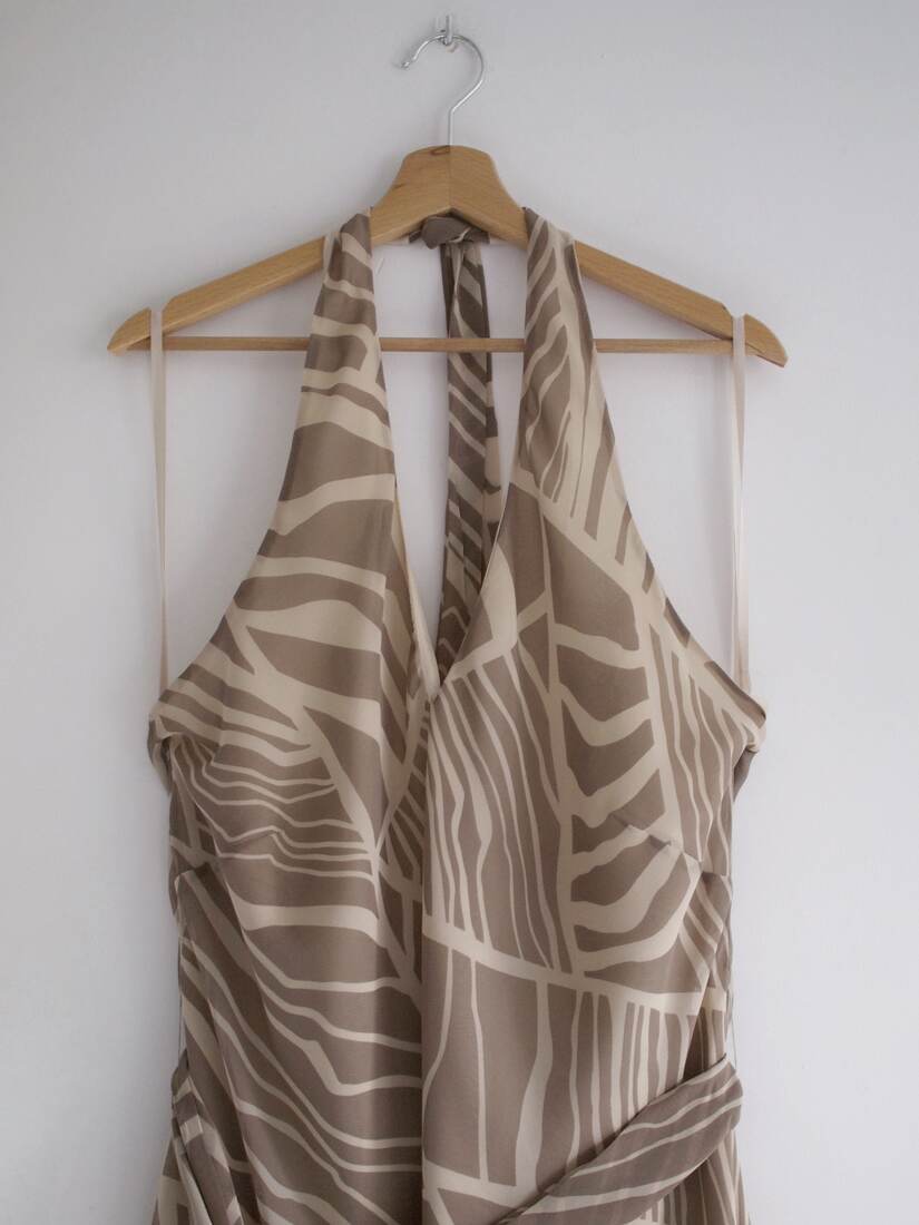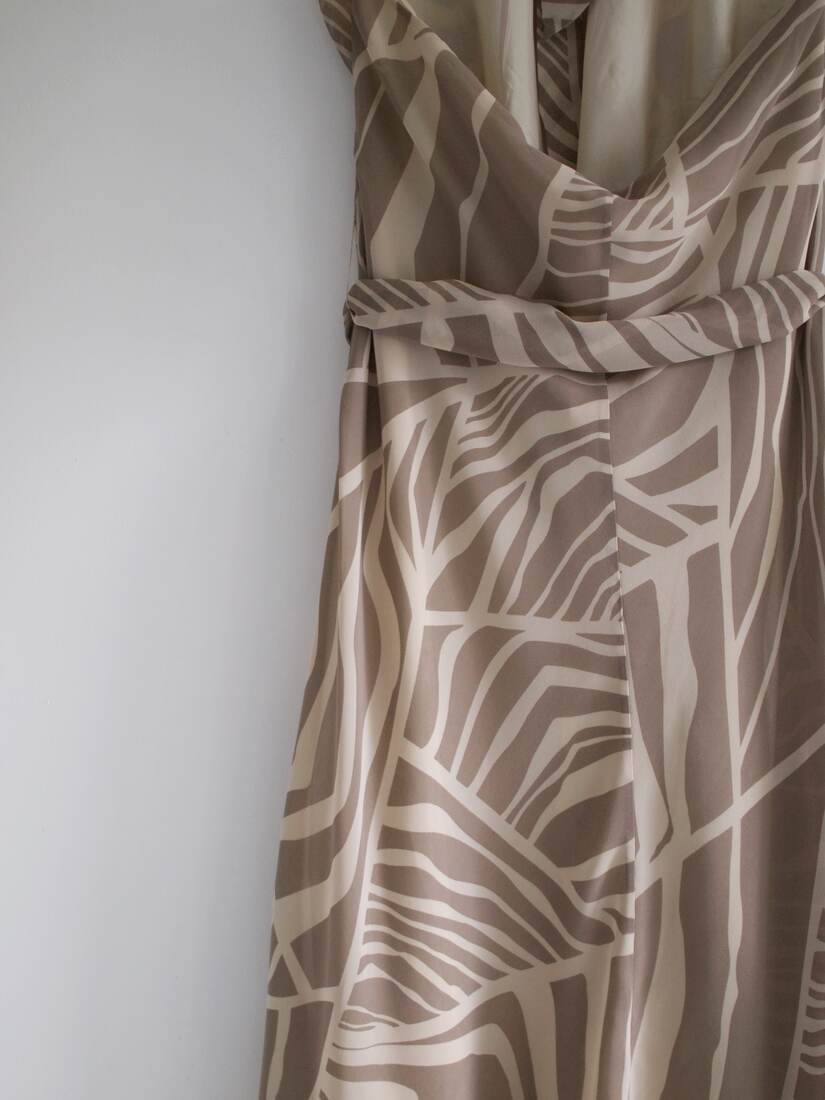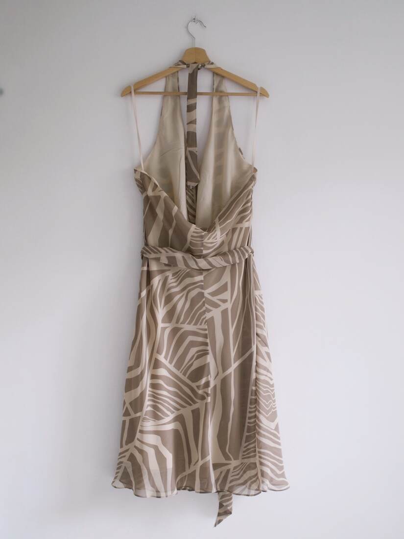 Jedwabna sukienka w animalistyczny wzór. Wiązana z tyłu, z paskiem i podszewką. Rozmiar z metki 18, polecam na L-XL. Nowa z metką, cena z metki 80 £ (ponad 400 zł).