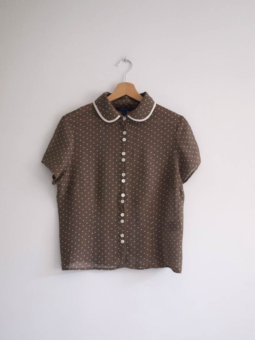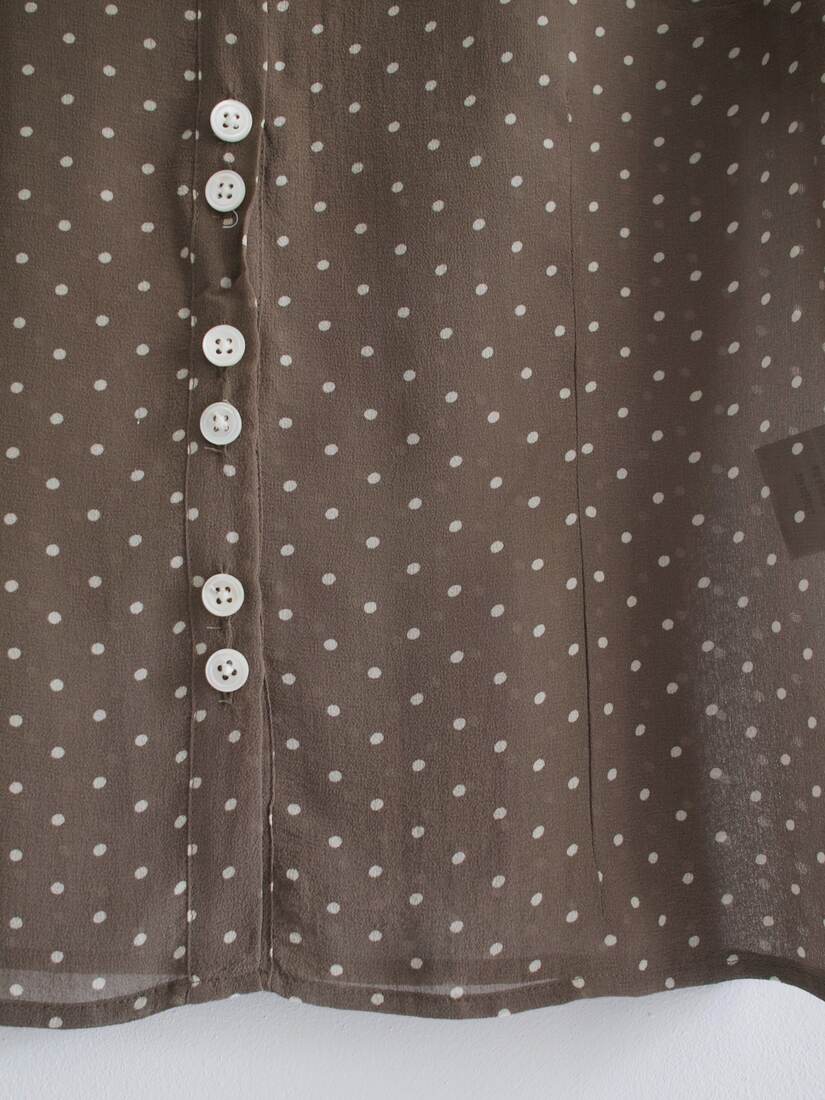 Kremowa koszula vintage z ozdobnymi guzikami i plisami na rękawach. Brak metki ze składem (prawdopodobnie poliester), materiał prawie nie gniecie się. Brak metki z rozmiarem, proszę sprawdzać wymiary. Bez wad.
