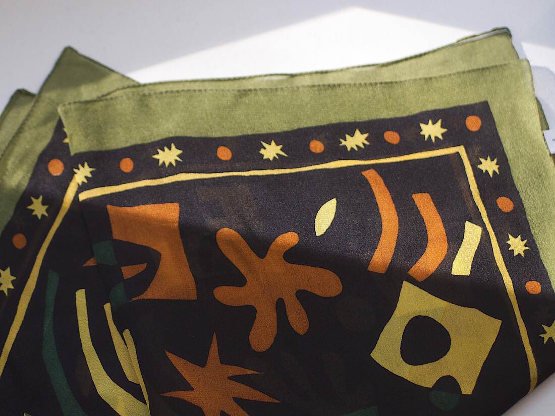 Jedwabna apaszka w abstrakcyjny wzór. Nowa bez metek. Wymiary: 52*52 cm.