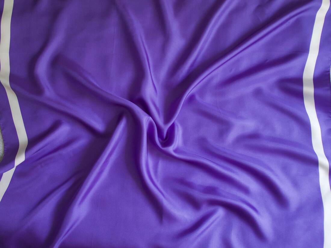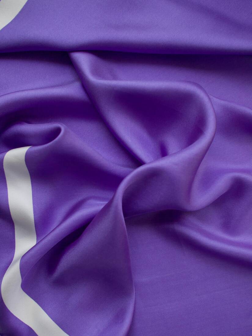 Duża jedwabna chusta w fioletowym kolorze. Piękny, połyskujący jedwab. Idealny stan, wymiary: 81×81.5 cm