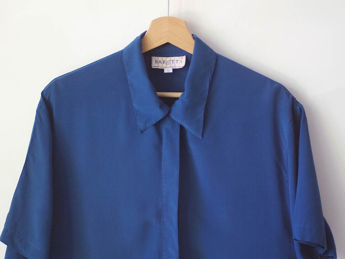 Granatowa jedwabna koszula vintage. Zapinana na ukryte guziki. Rozmiar z metki M, bardzo dobry stan.