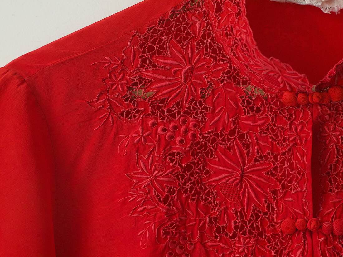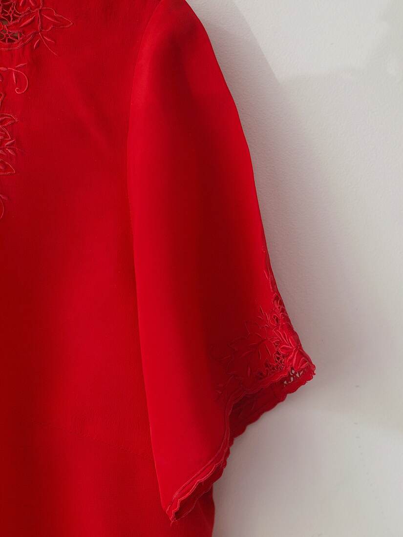 Unikatowa koszula vintage wykonana z wysokogatunkowego, chińskiego jedwabiu. Ręcznie haftowana, zapinana na guziki węzły. Rozmiar z metki 40, polecam na mniejsze rozmiary. Bardzo dobry stan.