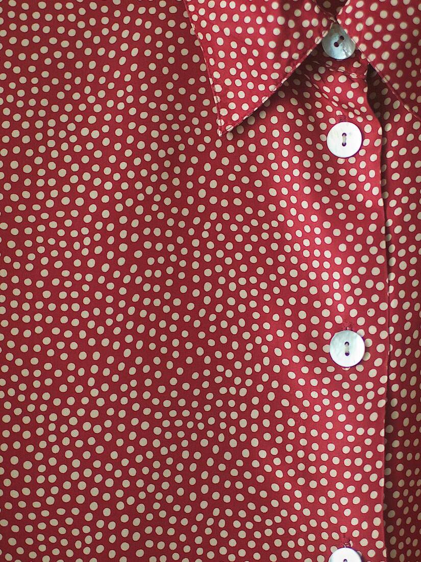 Unikatowa jedwabna koszula vintage. Zapinana na guziki wykonane z naturalnej muszli. Brak metki z rozmiarem, polecam na L, lub na mniejsze rozmiary jako oversize. Idealny stan.