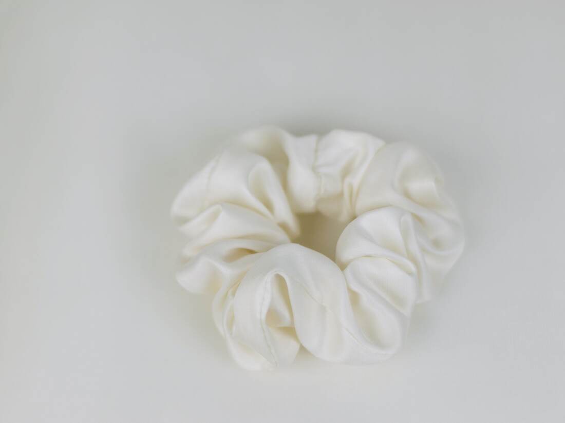 Zestaw z jedwabnej poszewki 40×40 cm i jednej gumki do włosów, szyty z jedwabiu z recyklingu.