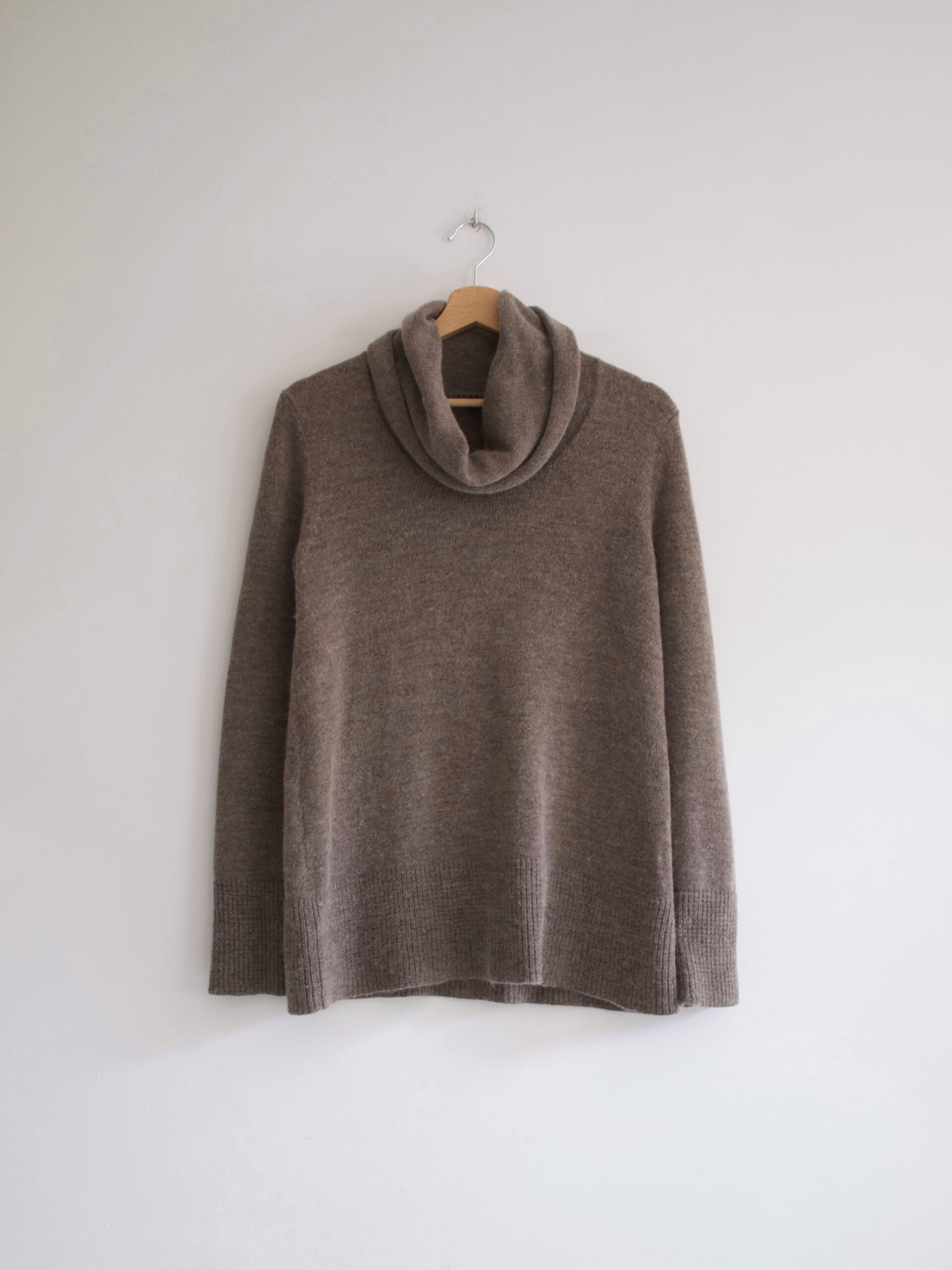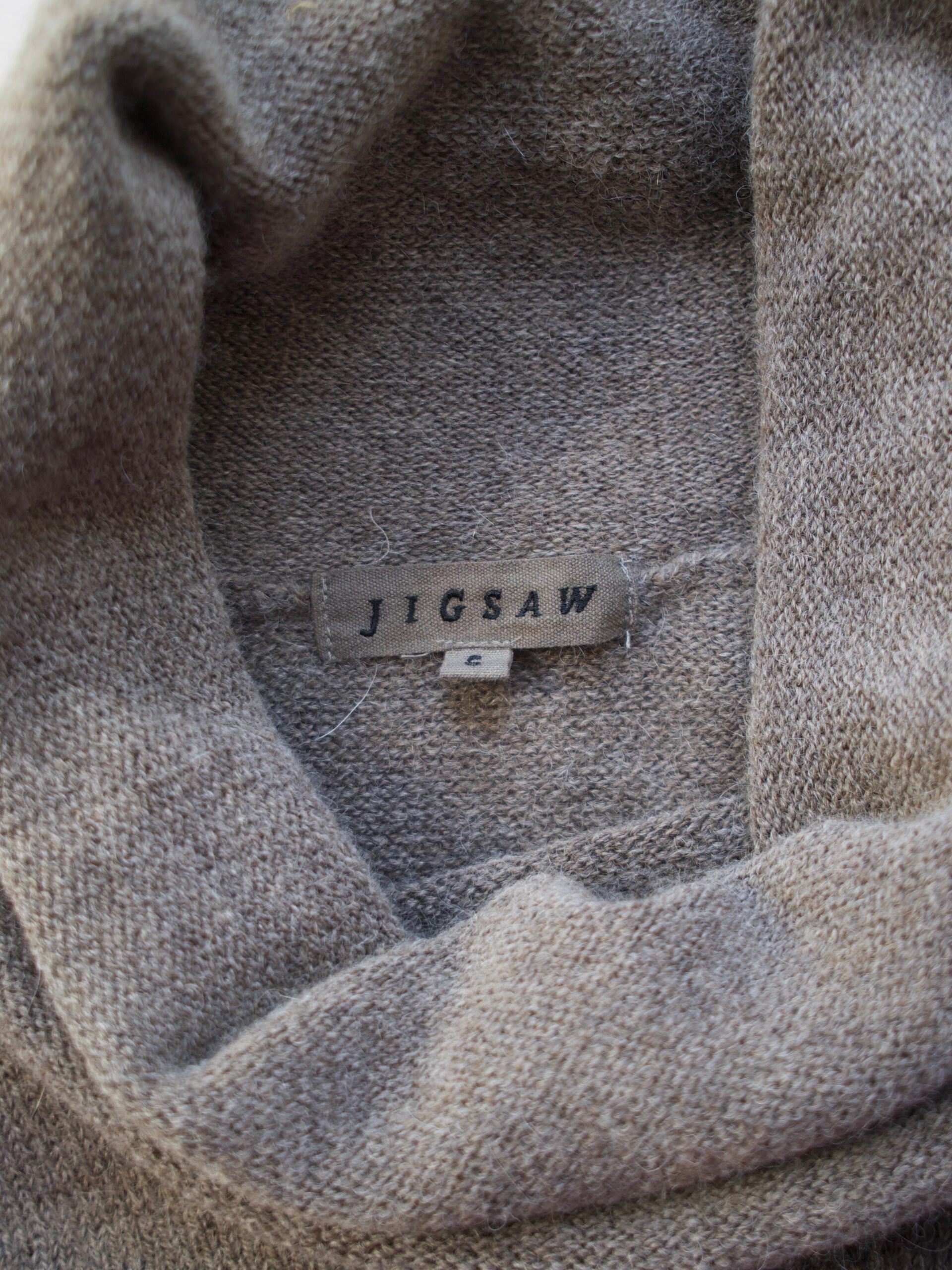 Sweter luksusowej brytyjskiej marki Jigsaw, wykonany z puszystej tkaniny z dodatkiem wełny oraz alpaki.