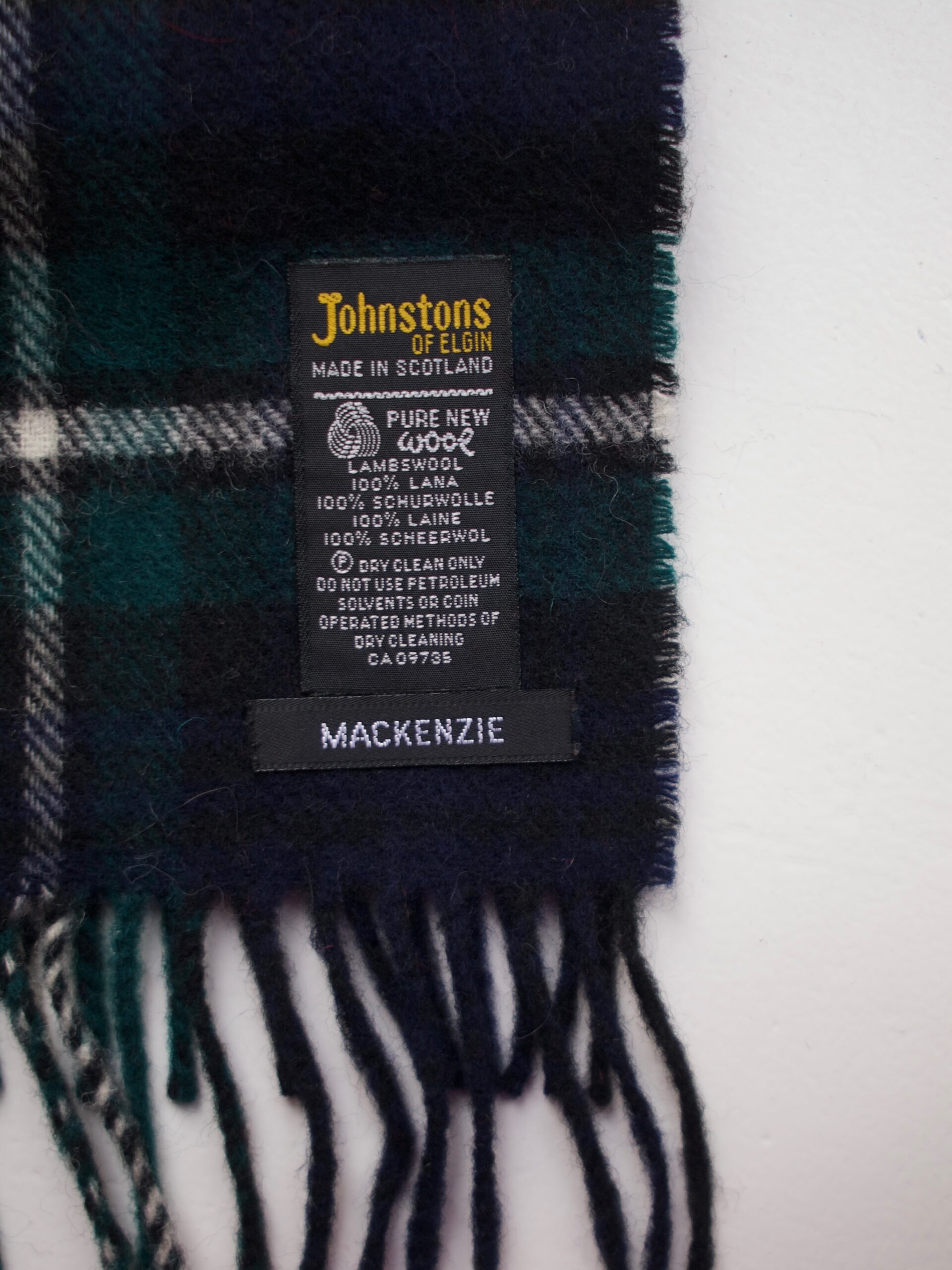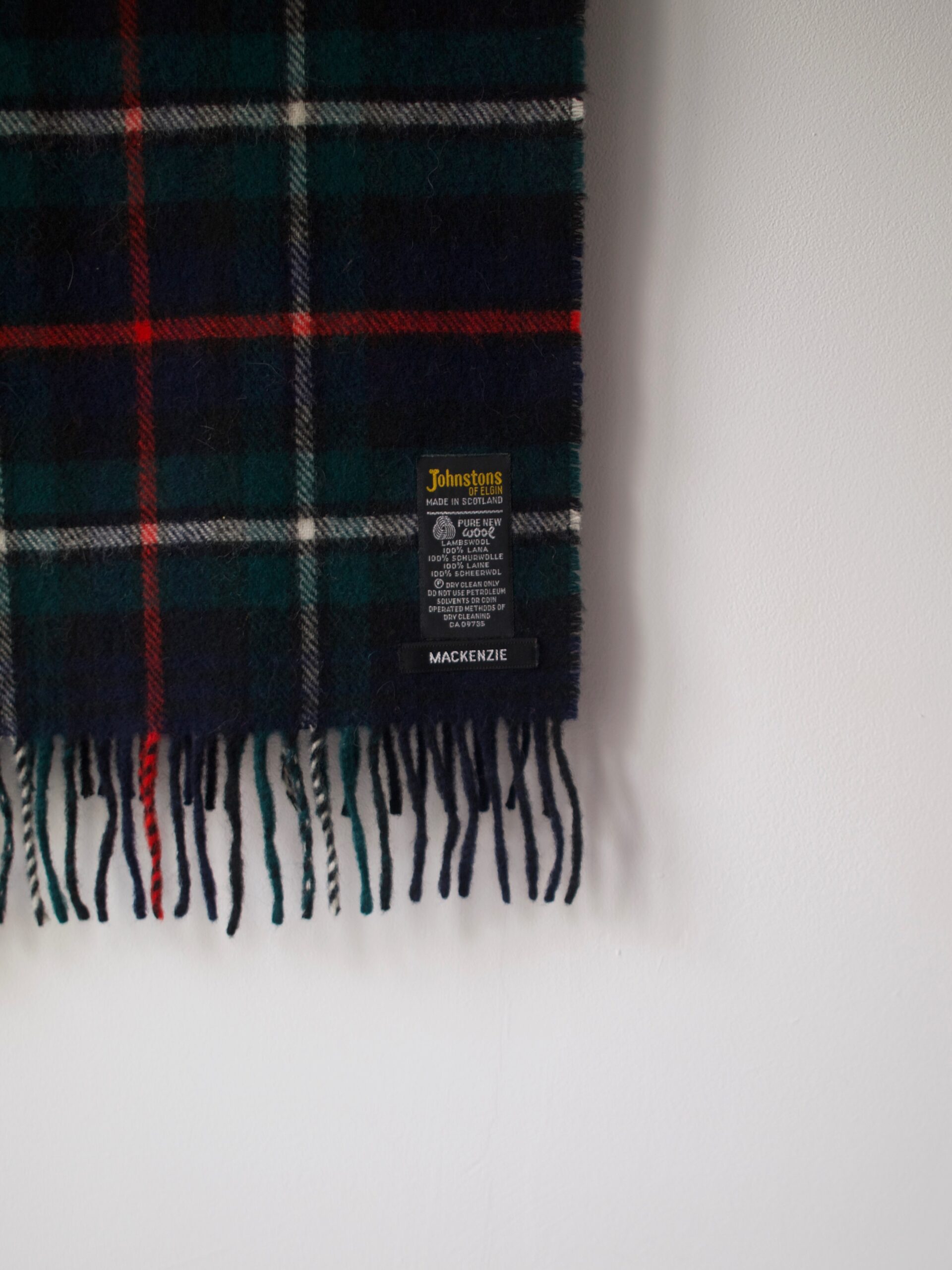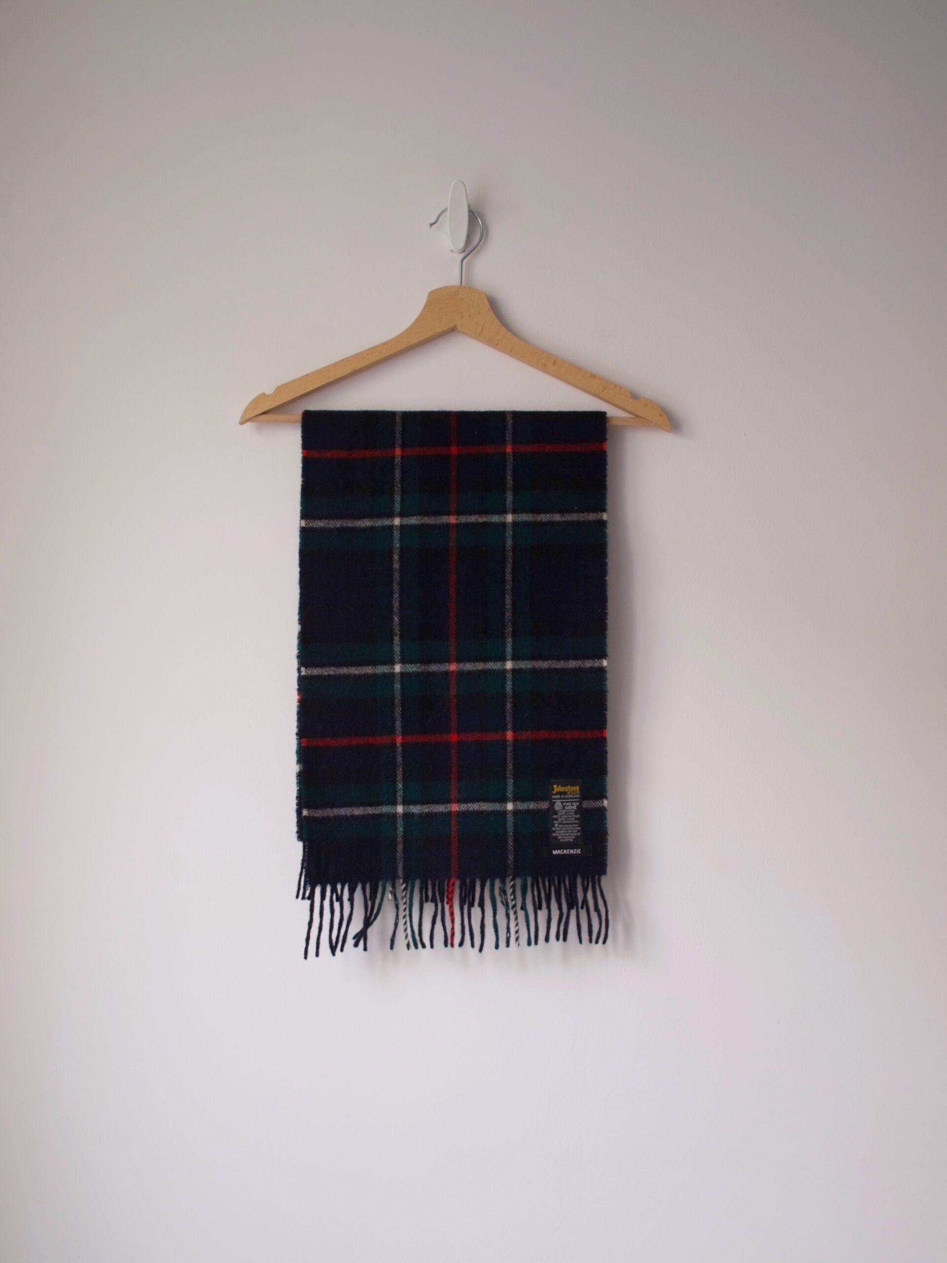 Wełniany szalik w kratę. Luksusowa szkocka marka Johnston of Elgin. Bez wad Wymiary bez frędzli: 142*30 cm