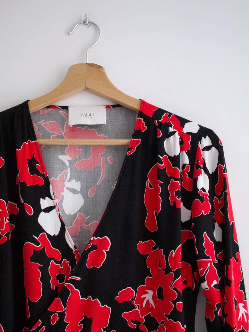 Sukienka o kopertowym kroju, ekskluzywna duńska marka Just Female. Rozmiar z metki S, bez wad.