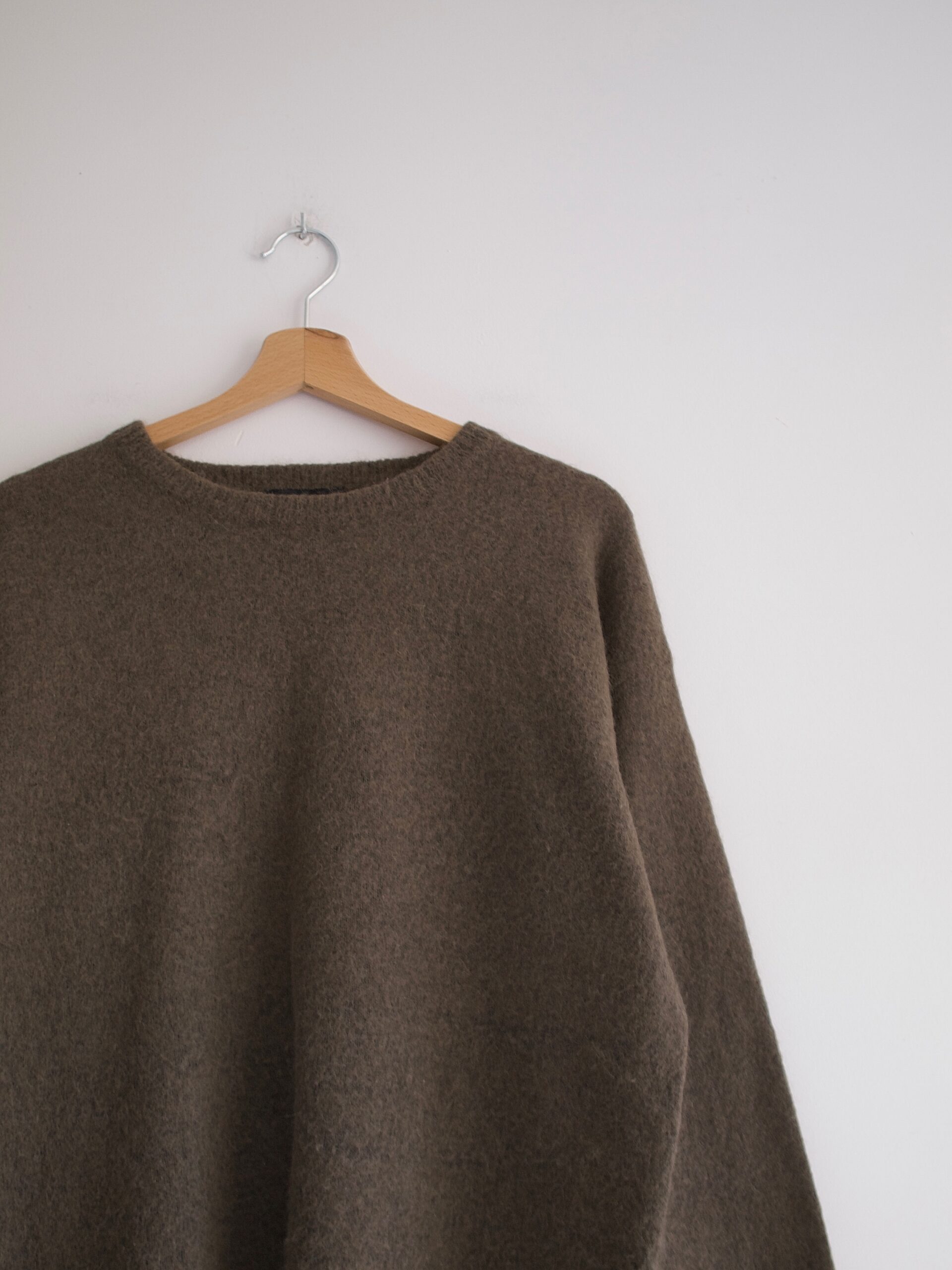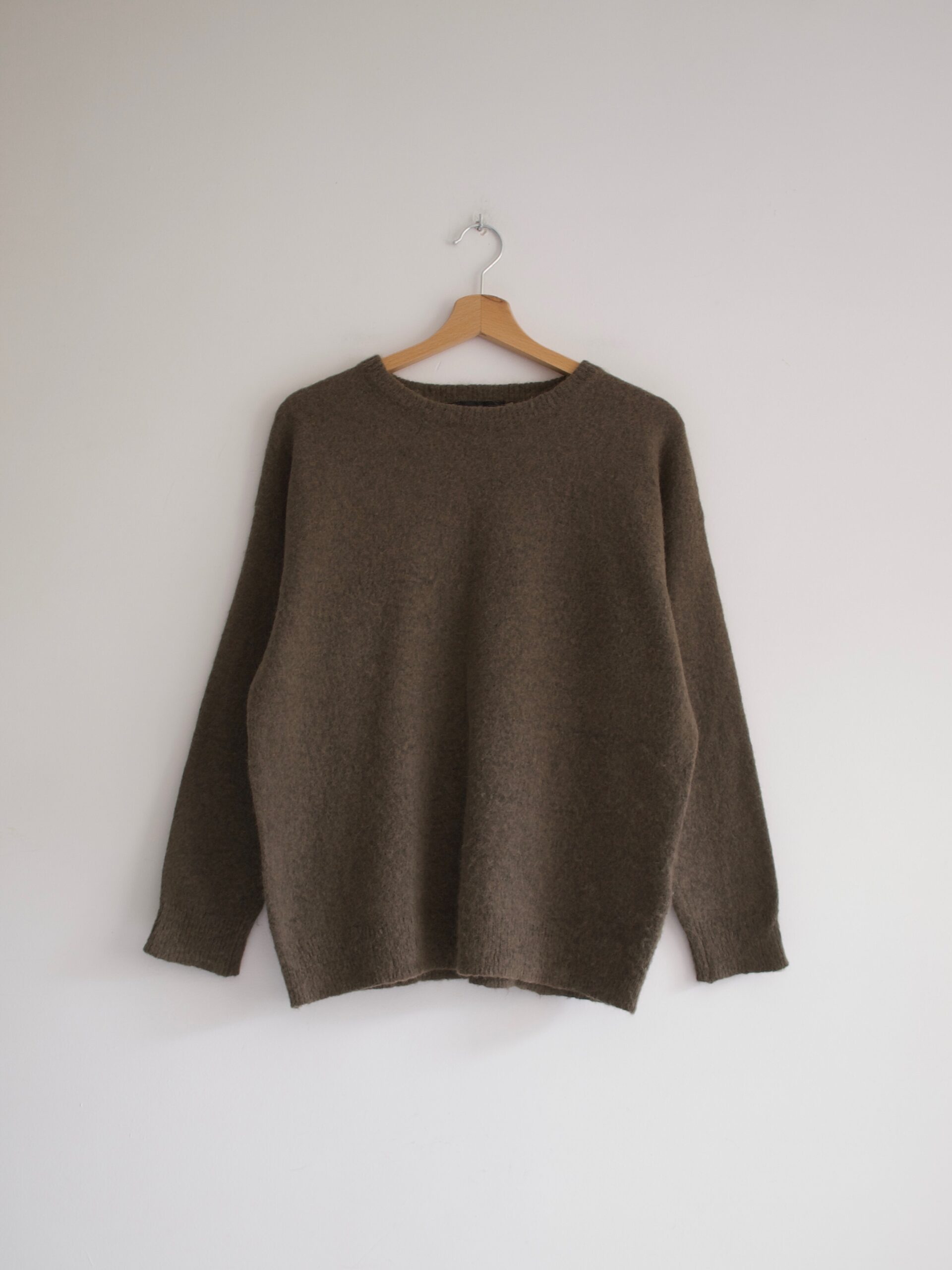Minimalistyczny kaszmirowy sweter o pudełkowym kroju. Sweter bardzo miękki i przyjemny, ma dwie małe zacerowane dziurki, nie widoczne w noszeniu, poza tym brak mankamentów. Wymiary poniżej.