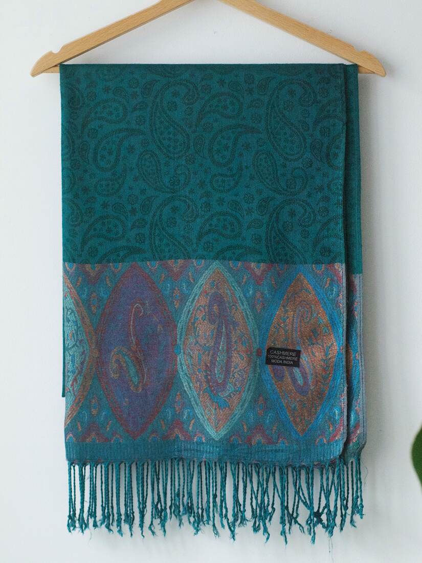 Duży kaszmirowy szal w orientalne wzory. Wymiary bez frędzli 177cm*70 cm. Bez wad.