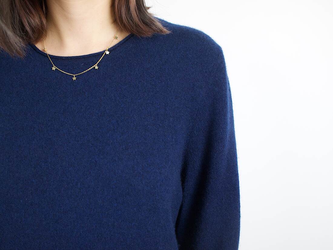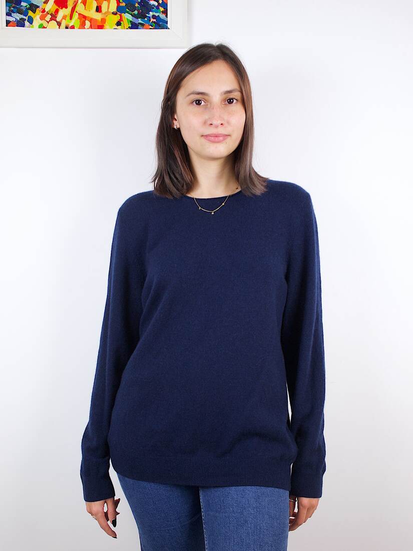 Sweter w granatowym kolorze, 100% kaszmir. Rozmiar z metki 44, będzie pasować na M-L, na mniejsze jako oversize. Bez wad.