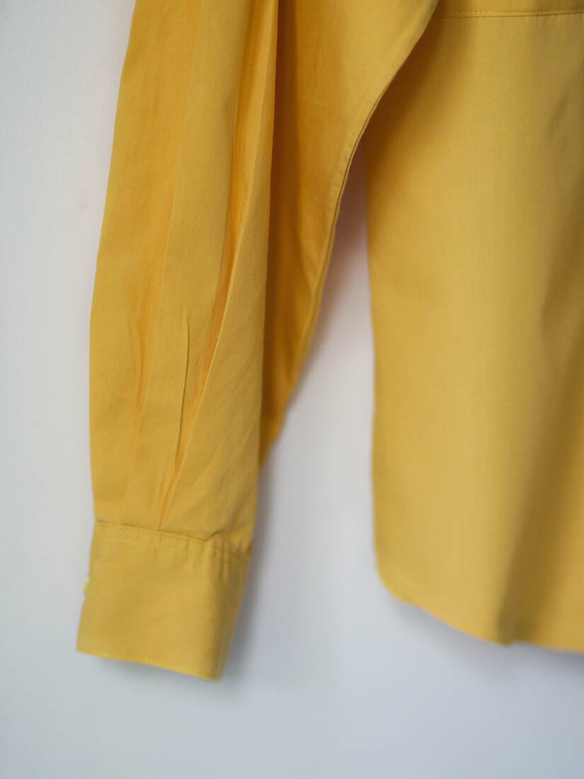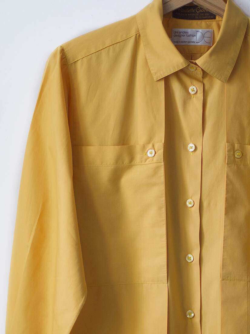 Koszula o ciekawym, awangardowym kroju, z szerokimi rękawami. Made in Western Germany, prawdziwa perełka vintage. Brak metki ze składem, prawdopodobnie bawełna. Mały defekt na jednym rękawie pokazany na ostatnim zdjęciu, ze względu na formę rękawa nie jest widoczny w noszeniu. Rozmiar z metki 42.