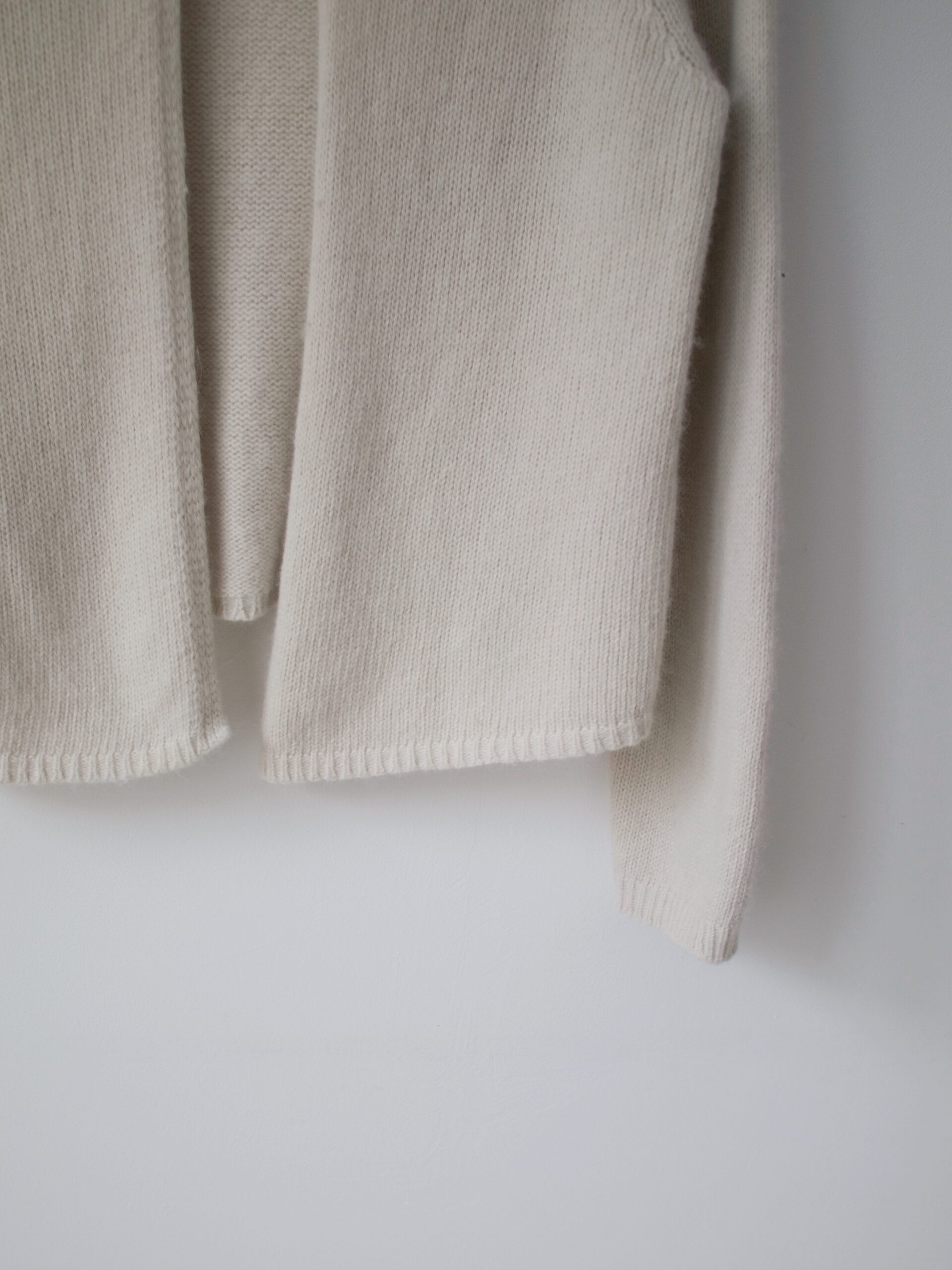 Klasyczny sweter M&S z dekoltem w serek. Skład to 100% kaszmir, bardzo dobry stan, jest minimalnie sfilcowany, nie jest to zauważalne, po prostu jest trochę sztywniejszy.