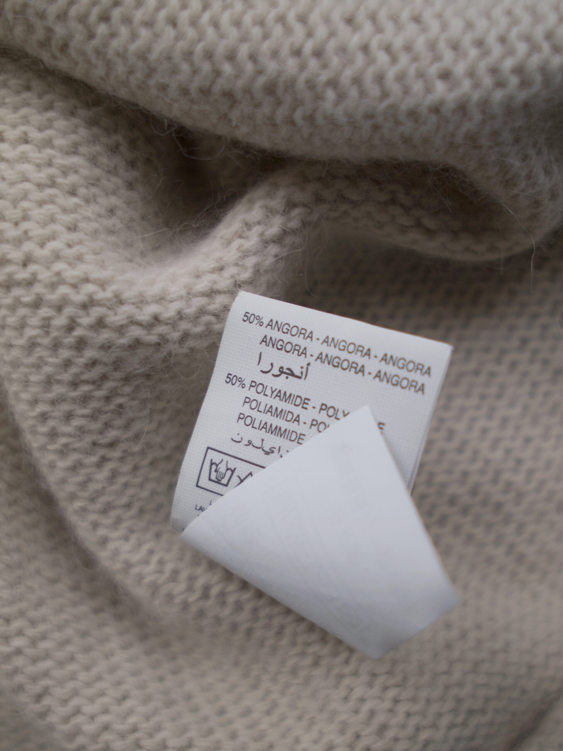 Miękki i puszysty sweter francuskiej marki La Fée Maraboutée. Rozmiar z metki: L Skład: 50% angora, 50% poliamid Stan: bez wad Szerokość w klatce ok 49 cm Długośćcałkowita 56 cm