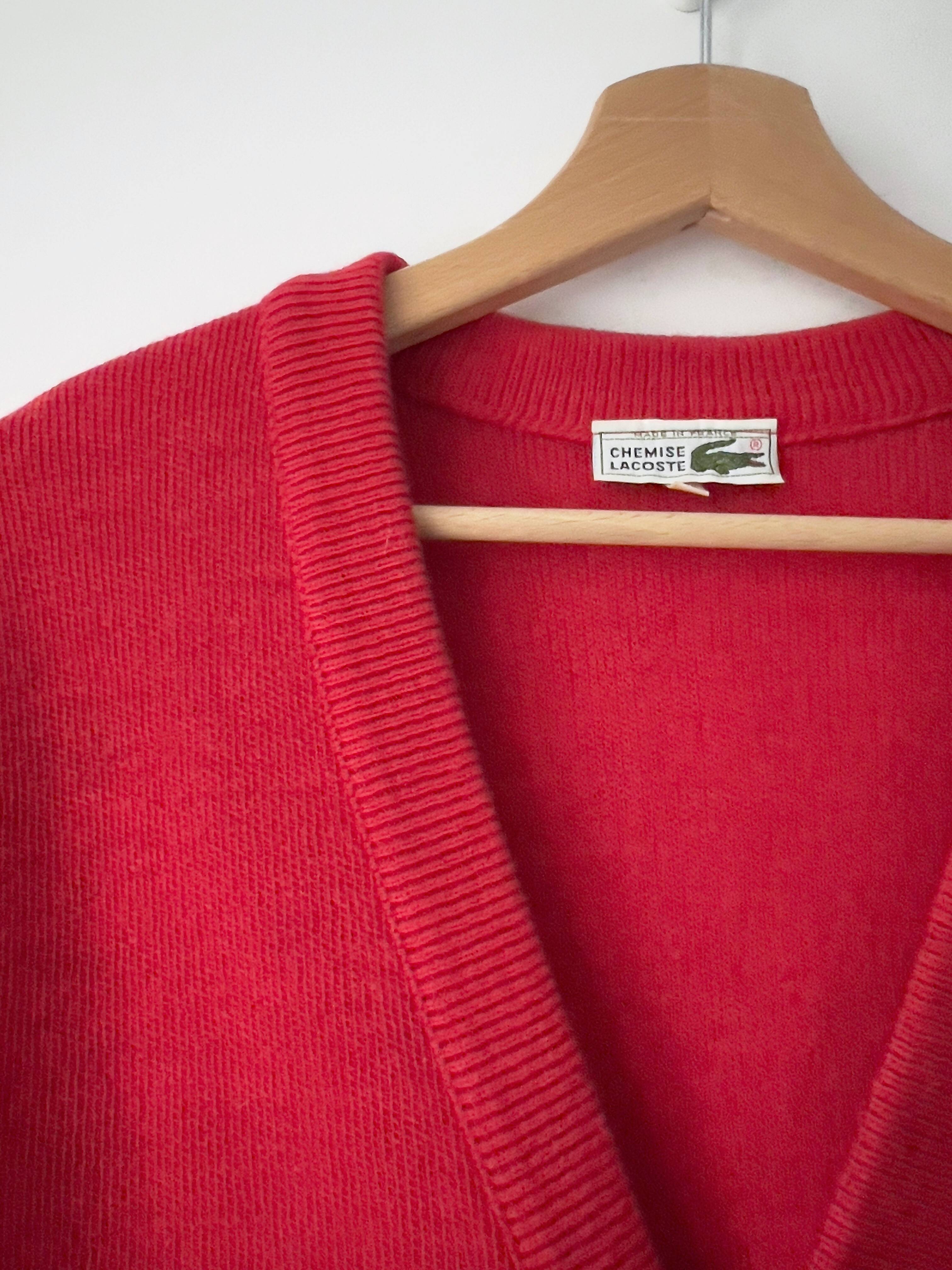 Gruby kardigan marki Lacoste. Model vintage, wyprodukowany we Francji. Rozmiar z metki 5, idealny stan.