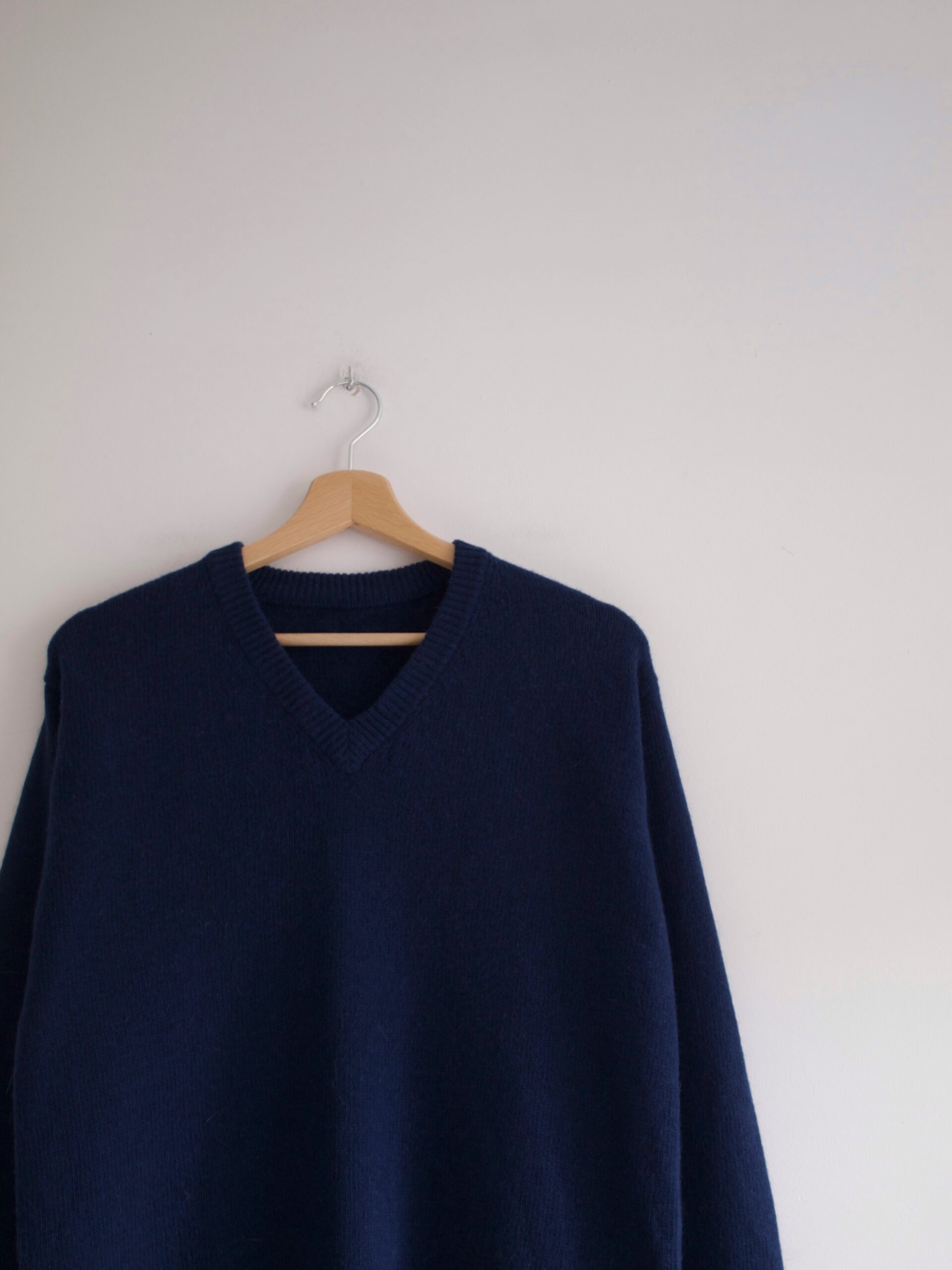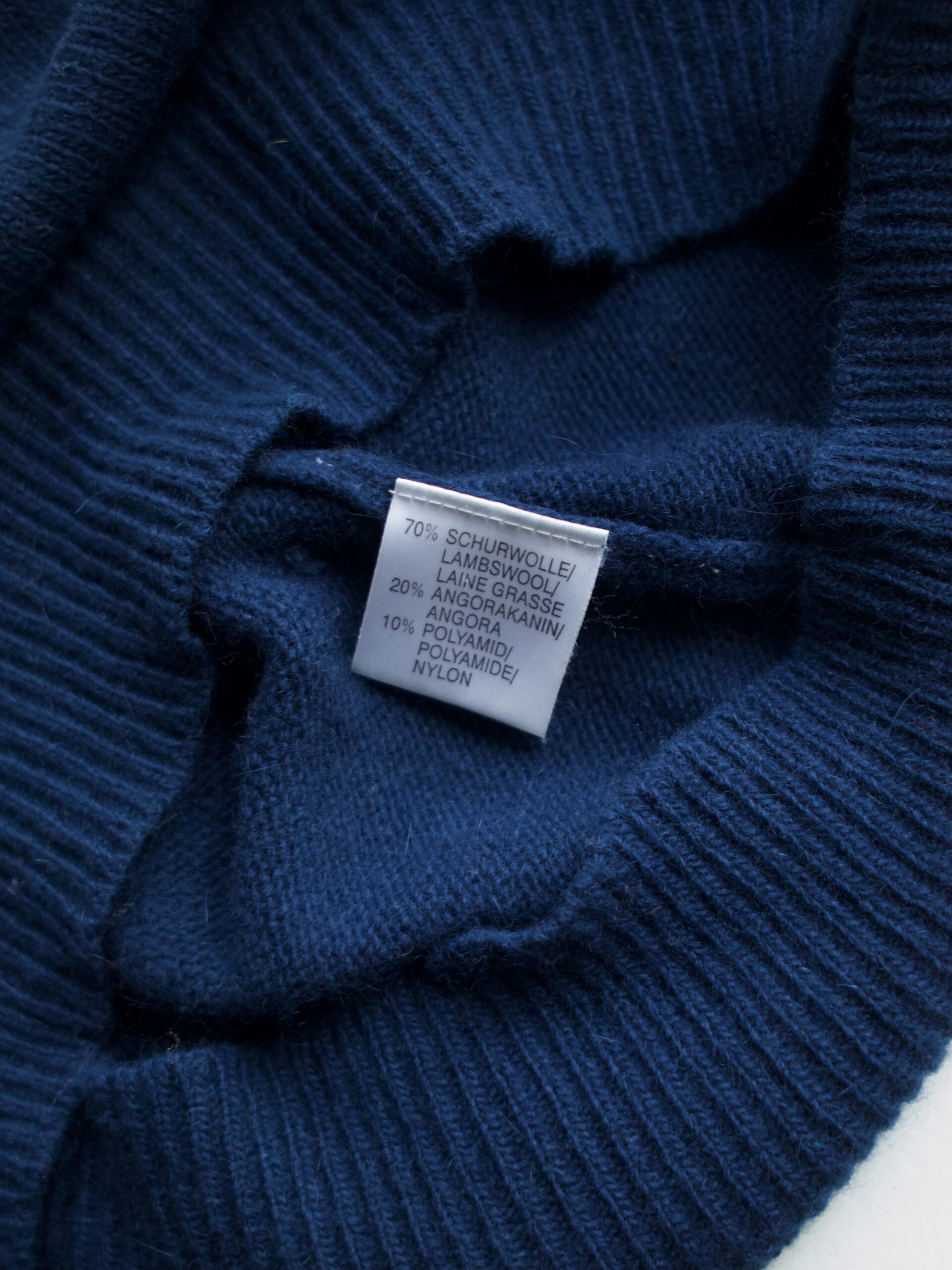 Granatowy sweter, wykonany z miłej w dotyku mieszanki wełny jagnięcej oraz angory.