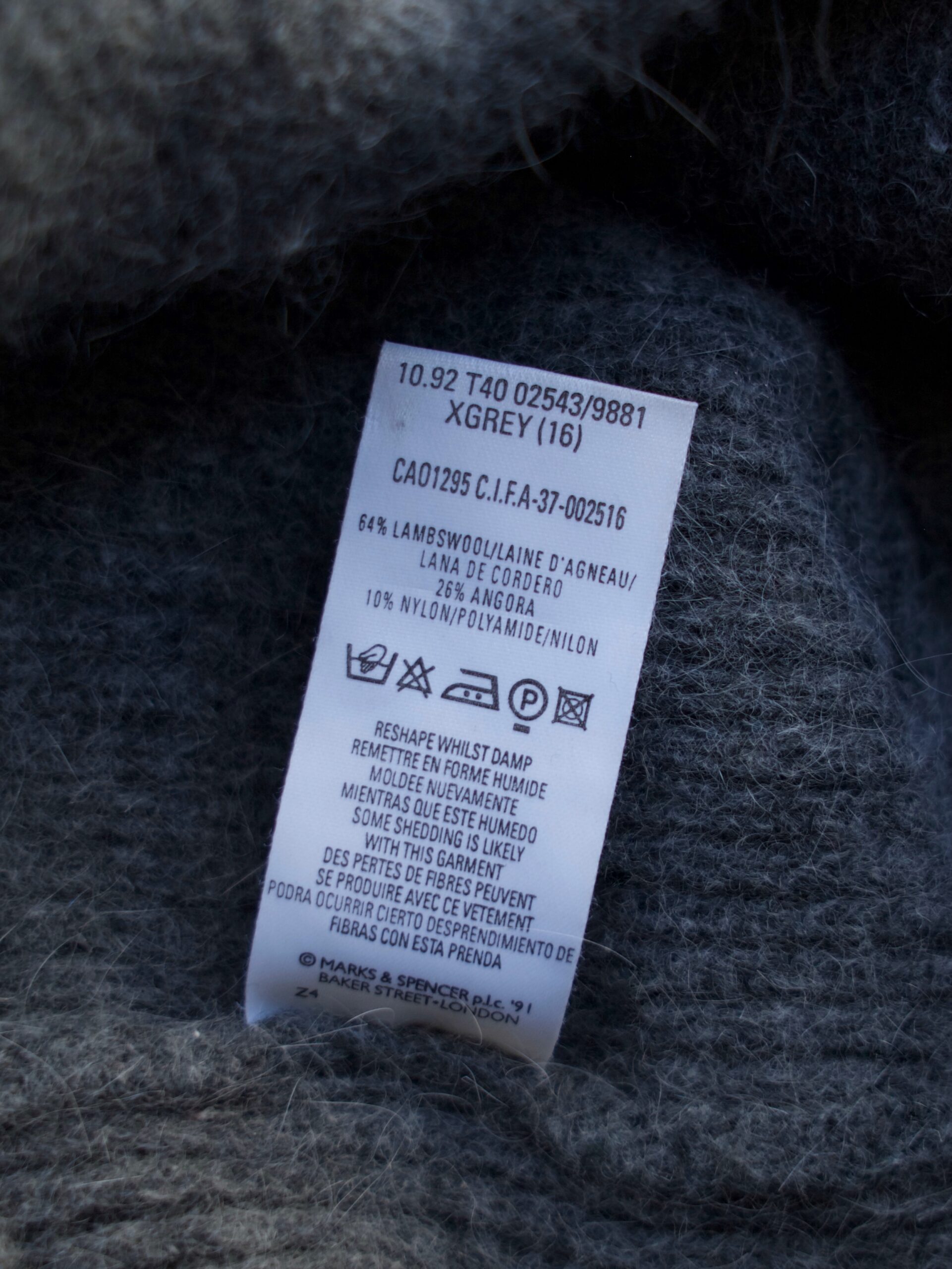 Rozmiar: 44, dość uniwersalny fason Skład: 64% wełna jagnięca, 26% angora, 10% poliamid Stan: bardzo dobry Szerokość w klatce 54 cm Długośćcałkowita 71 cm