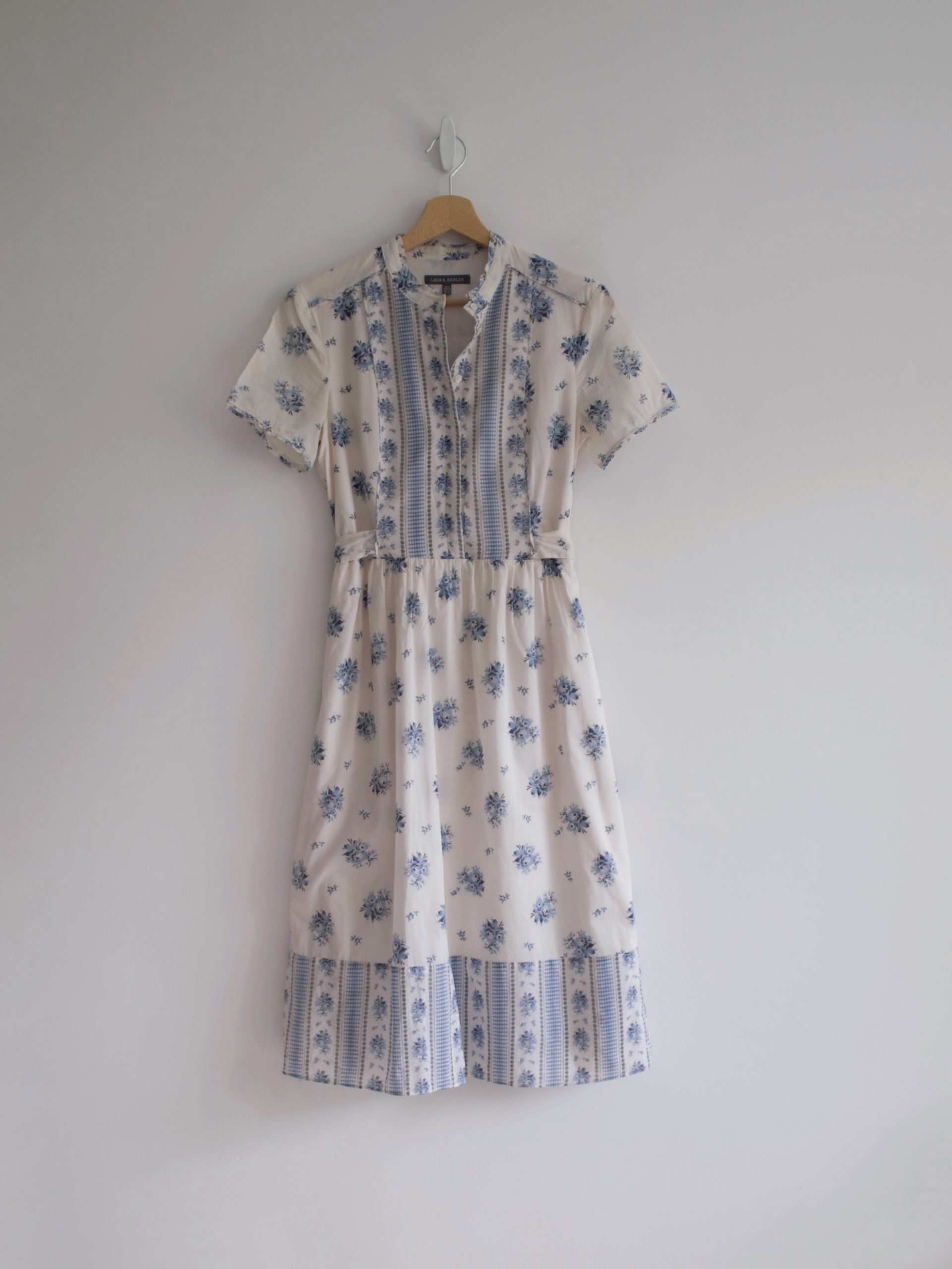 Sukienka vintage kultowej brytyjskiej marki Laura Ashley. Góra zapinana na guziki, z podszewką w dolnej części.