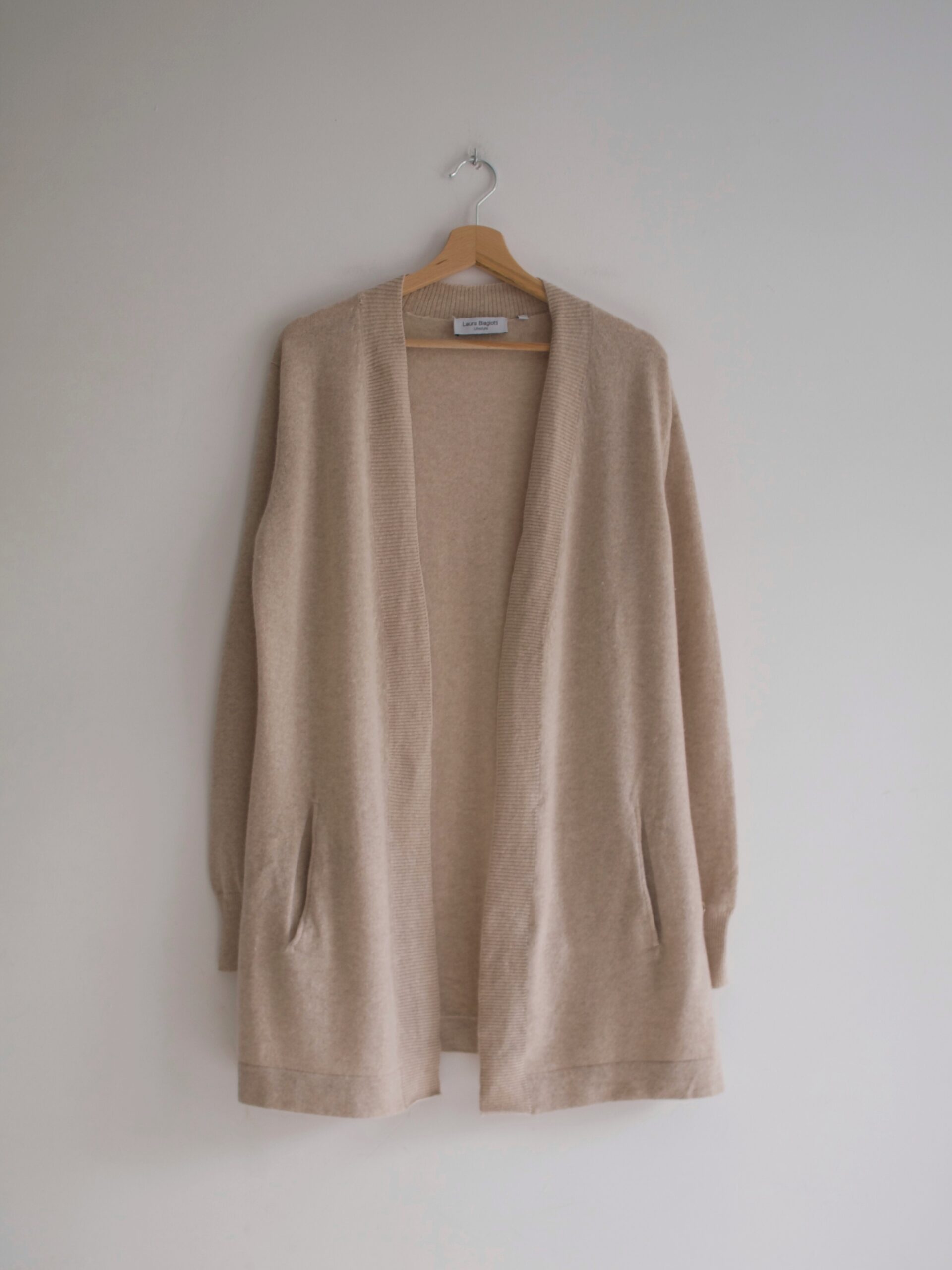 Sweter włoskiej projektantki Laury Biagiotti, specjalizującej się w produkcji luksusowych kaszmirowych ubrań. Ma dwa małe cerowania, absolutnie niewidoczne w noszeniu, poza tym bez wad.