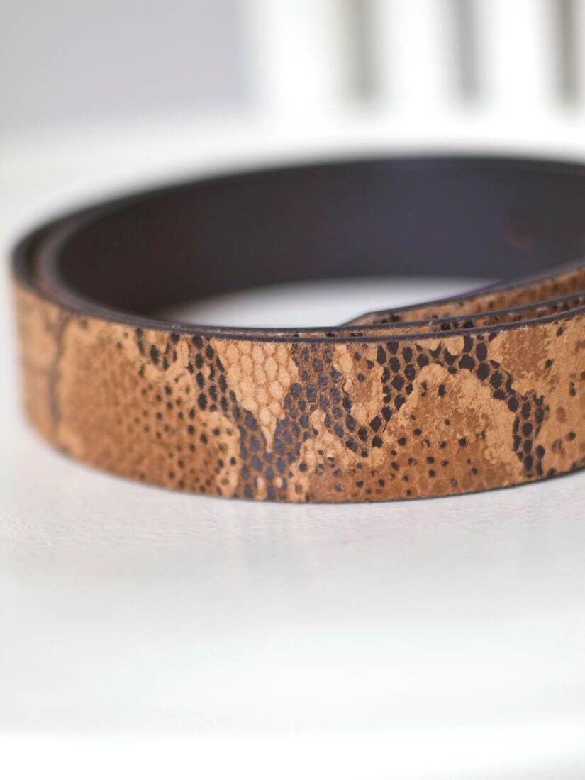Skórzany pasek w zwierzęce wzory. Długość 85 cm, bez wad.