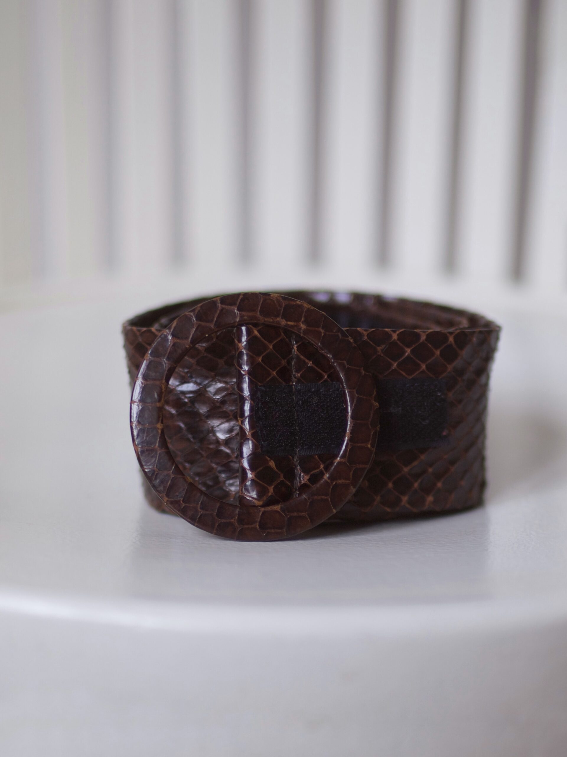 Oryginalna, unikatowa torebka vintage wykonana ze skóry naturalnej. Wyprodukowana we Włoszech. Posiada trzy komory, jedna zapinana na zamek, wewnątrz dodatkowa kieszonka na zamek. Rączki torebki są popękane + w jednym miejscu małe zadrapanie widoczne na zdjęciach.