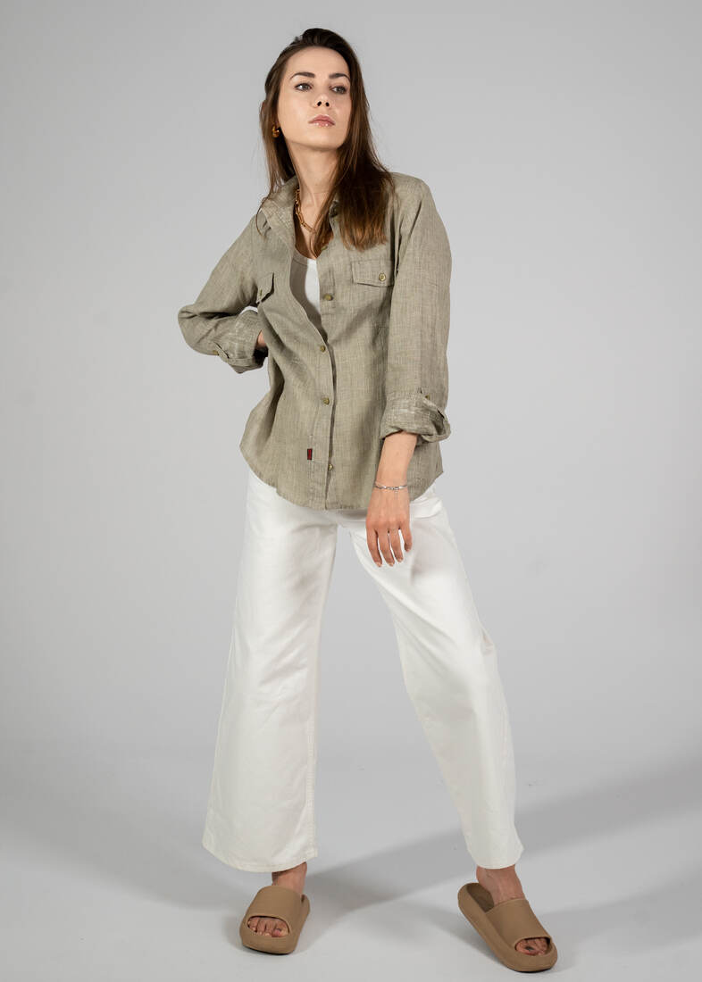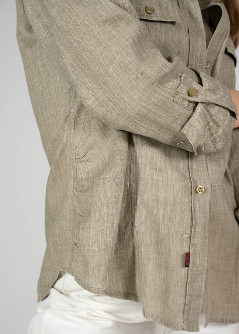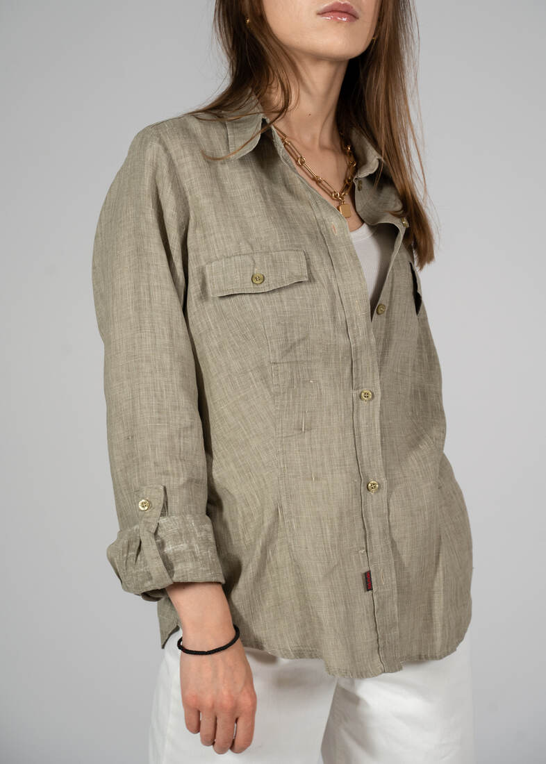 Koszula vintage, w 100% wykonana ze lnu w naturalnym kolorze. Rozmiar z metki L, również pasuje na mniejsze. Idealny stan.