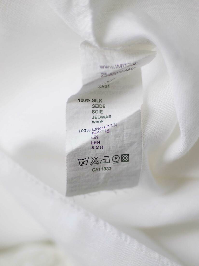 Lniana koszula z kontrastowymi jedwabnymi częściami, duńska marka IMITZ. Rozmiar z metki 40, polecam na M (na L będzie bardziej obcisła), bez wad.