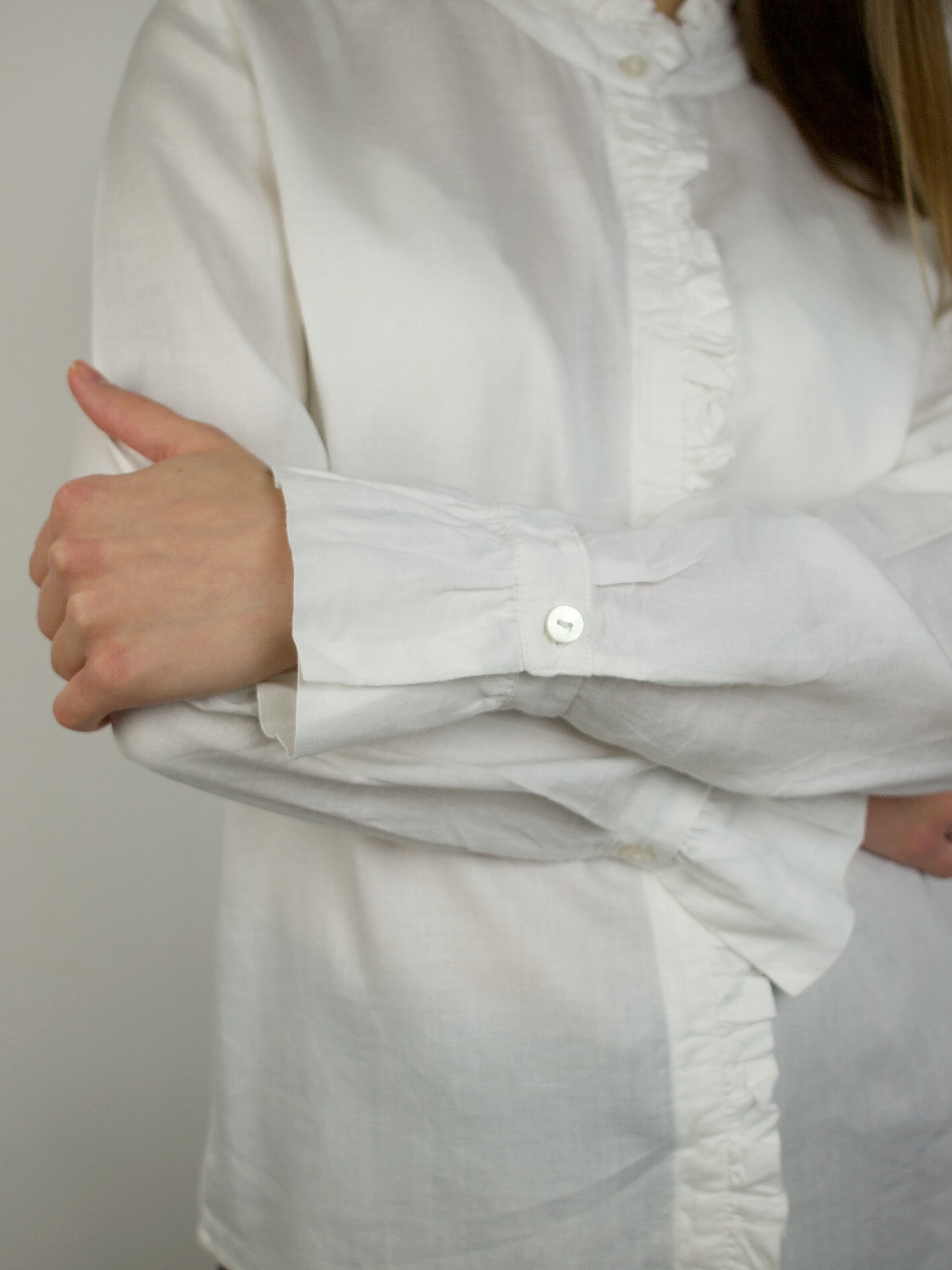 Skład: 55% len, 45% wiskoza. Modelka nosi rozmiar XS-S.