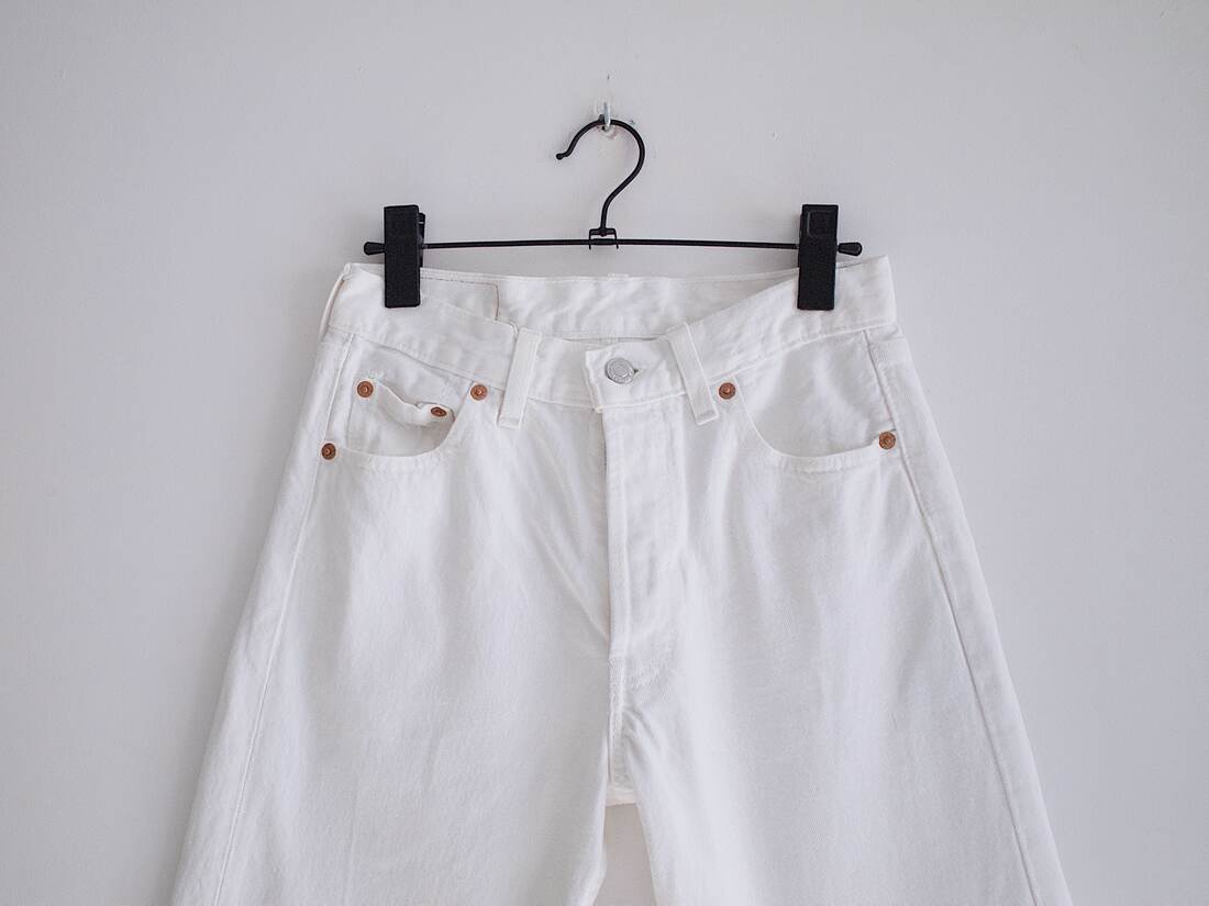 Klasyczny model Levi’s 501, w 100% wykonane z bawełny. Rozmiar z metki W28 L30, jest to model vintage, więc polecam sprawdzić wymiary (będą pasować na XS). Nie rozciągają się. Idealny stan.