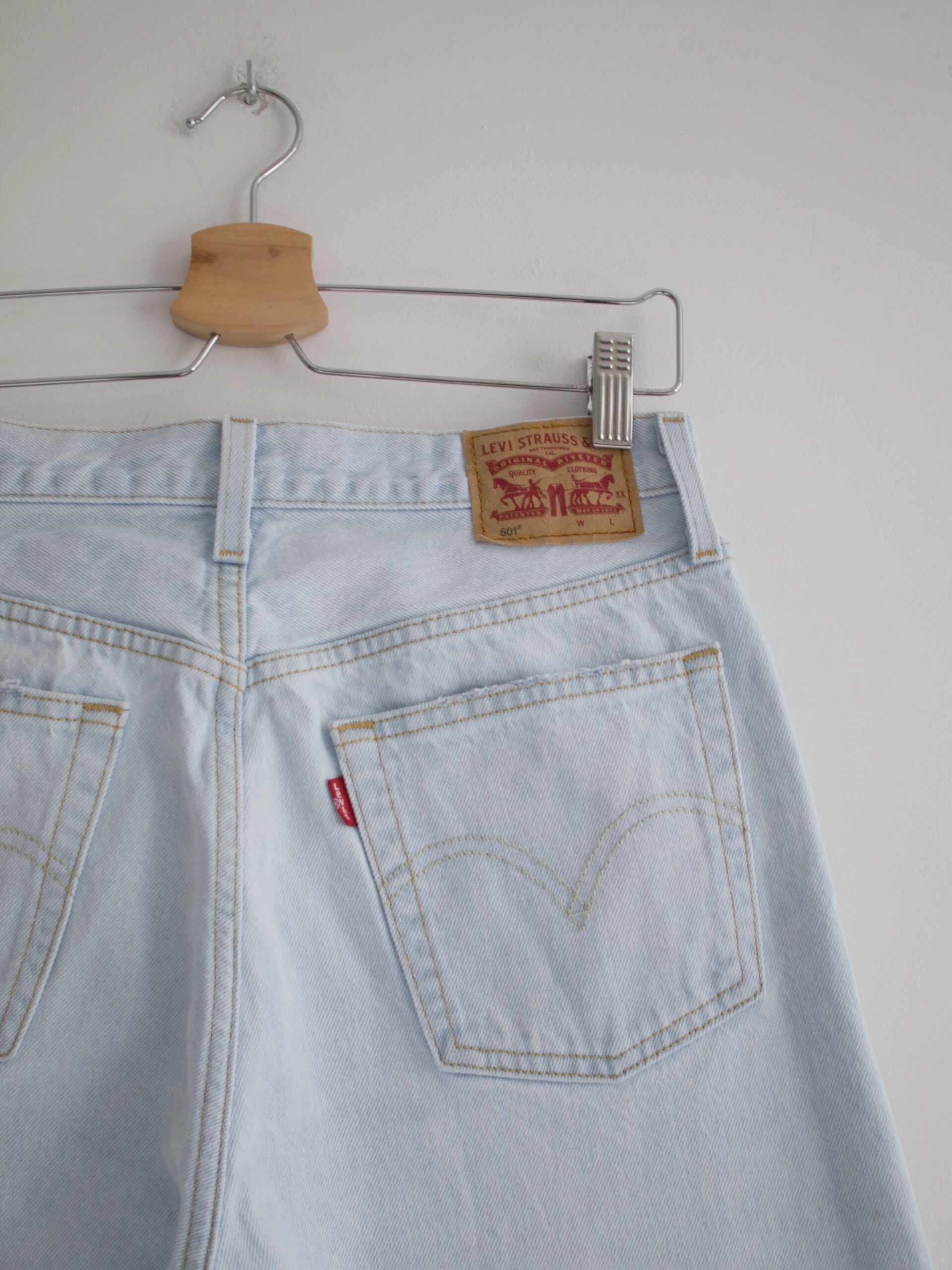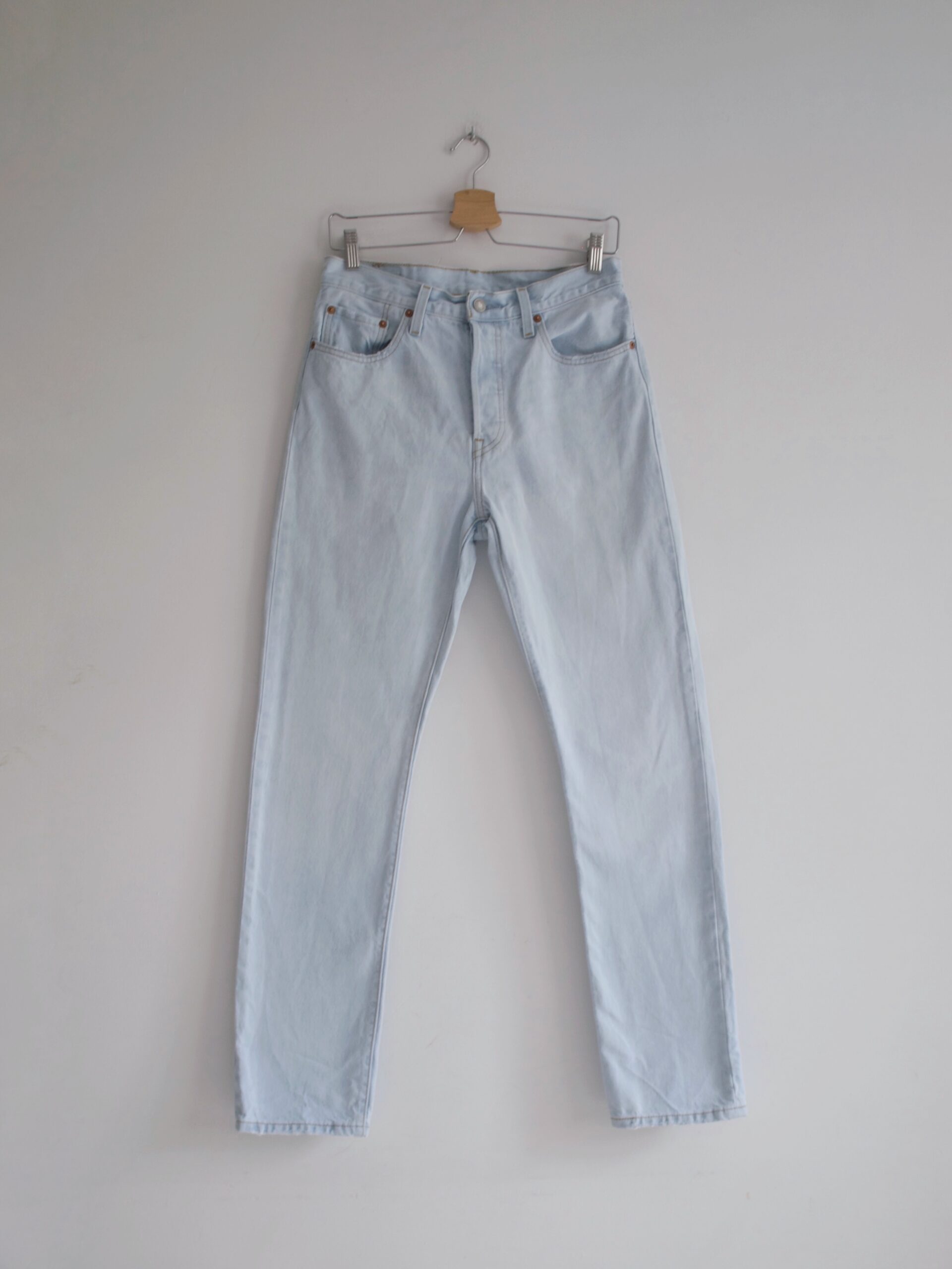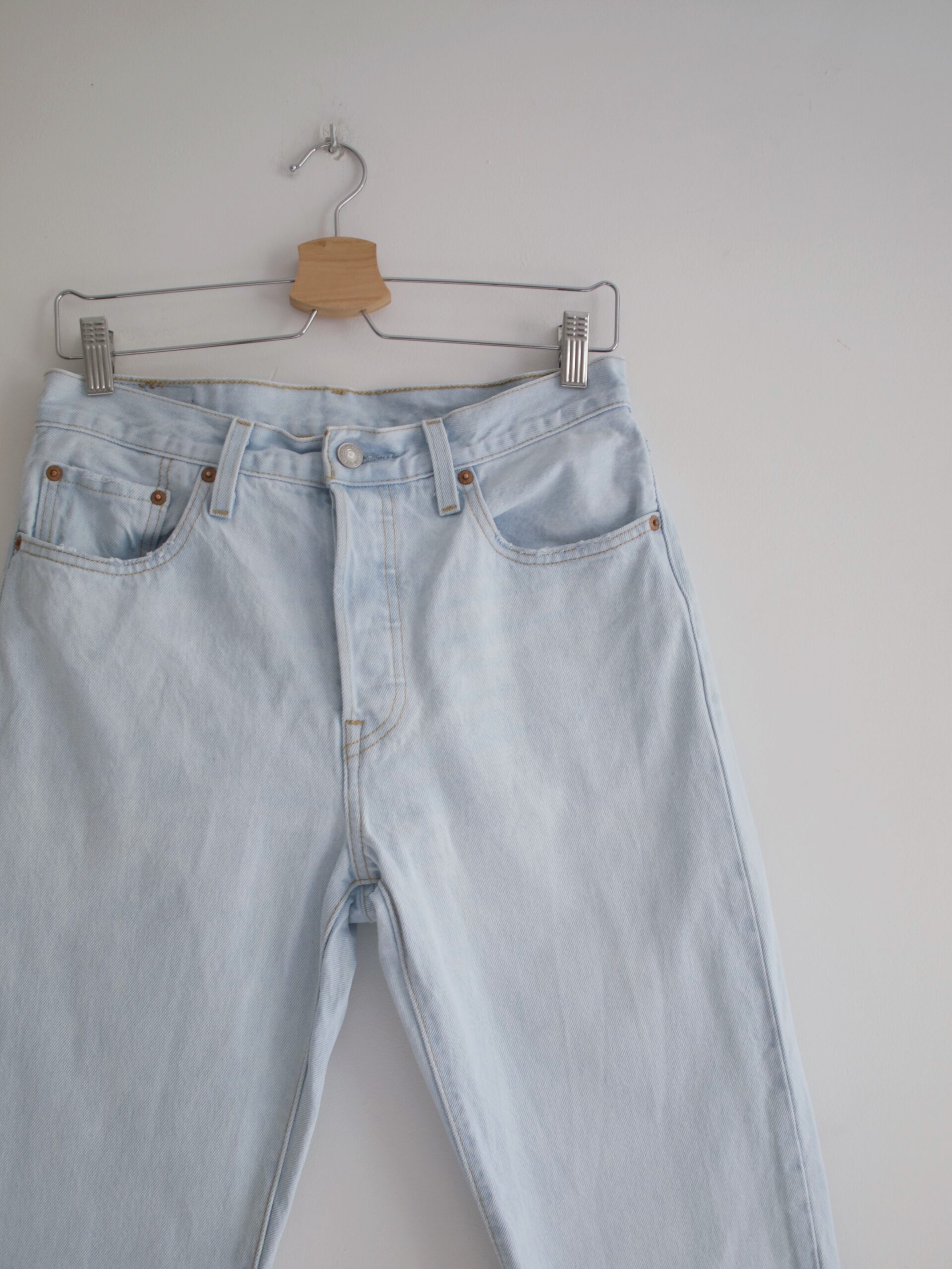 Levi’s 501 w jasnym niebieskim kolorze. Nie są rozciągliwe Rozmiar: 28/32 Skład: 100% bawełna Stan: idealny Szerokość w pasie 36 cm Szerokość w biodrach 50 cm Długość całkowita 108 cm