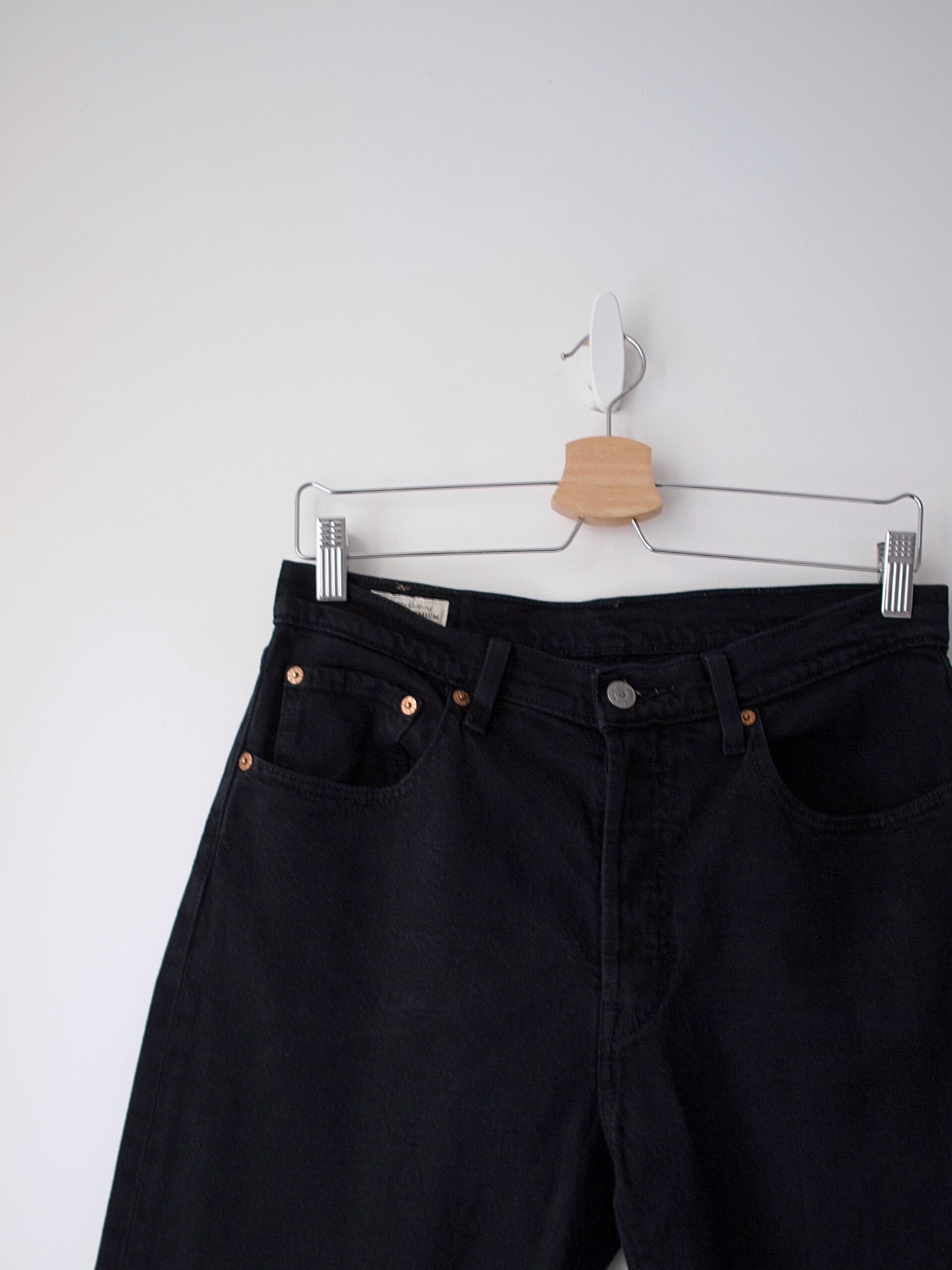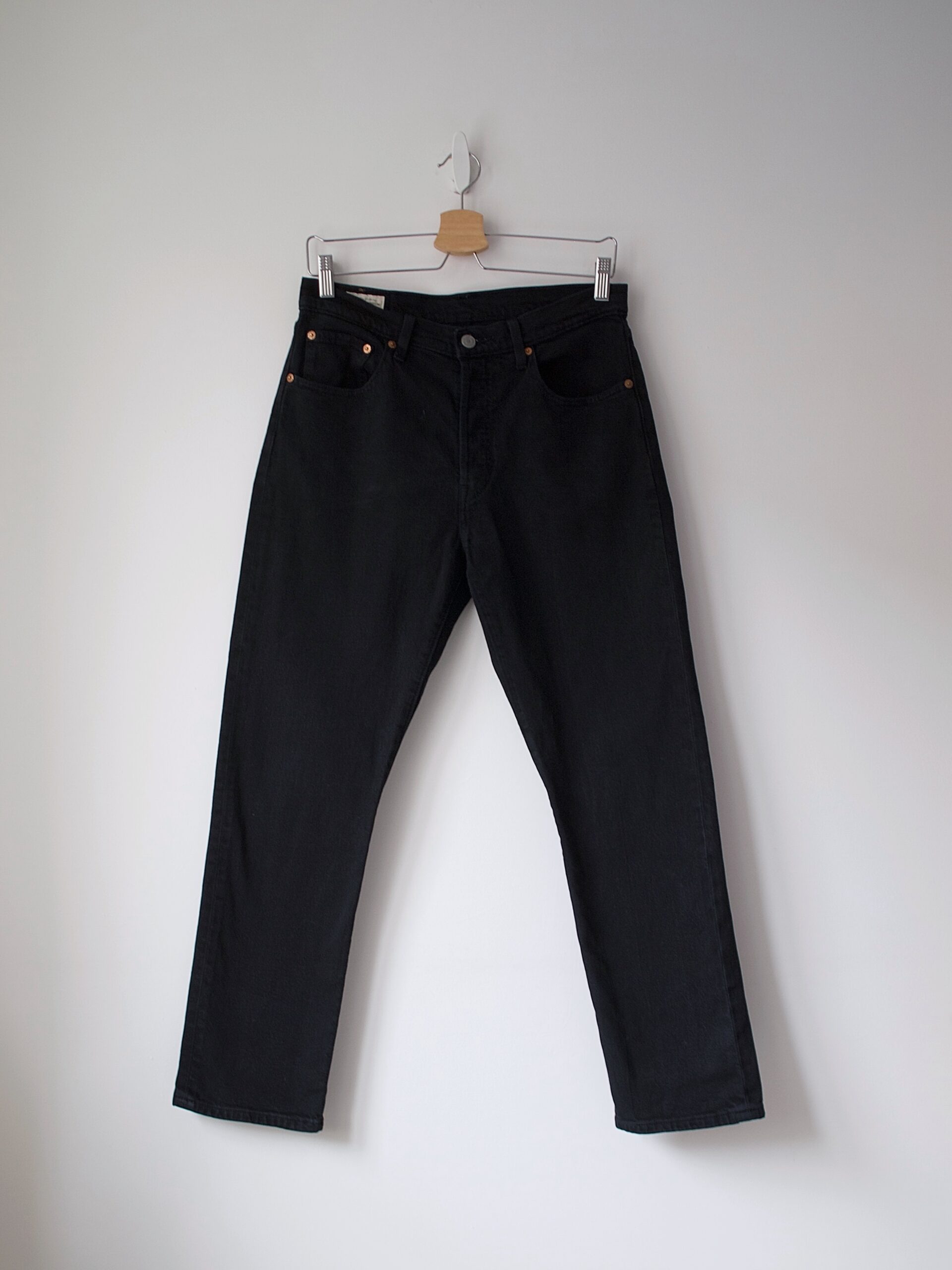 Jeansy marki Levi’s, kultowy model 501. Zapinany na metalowe guziki.