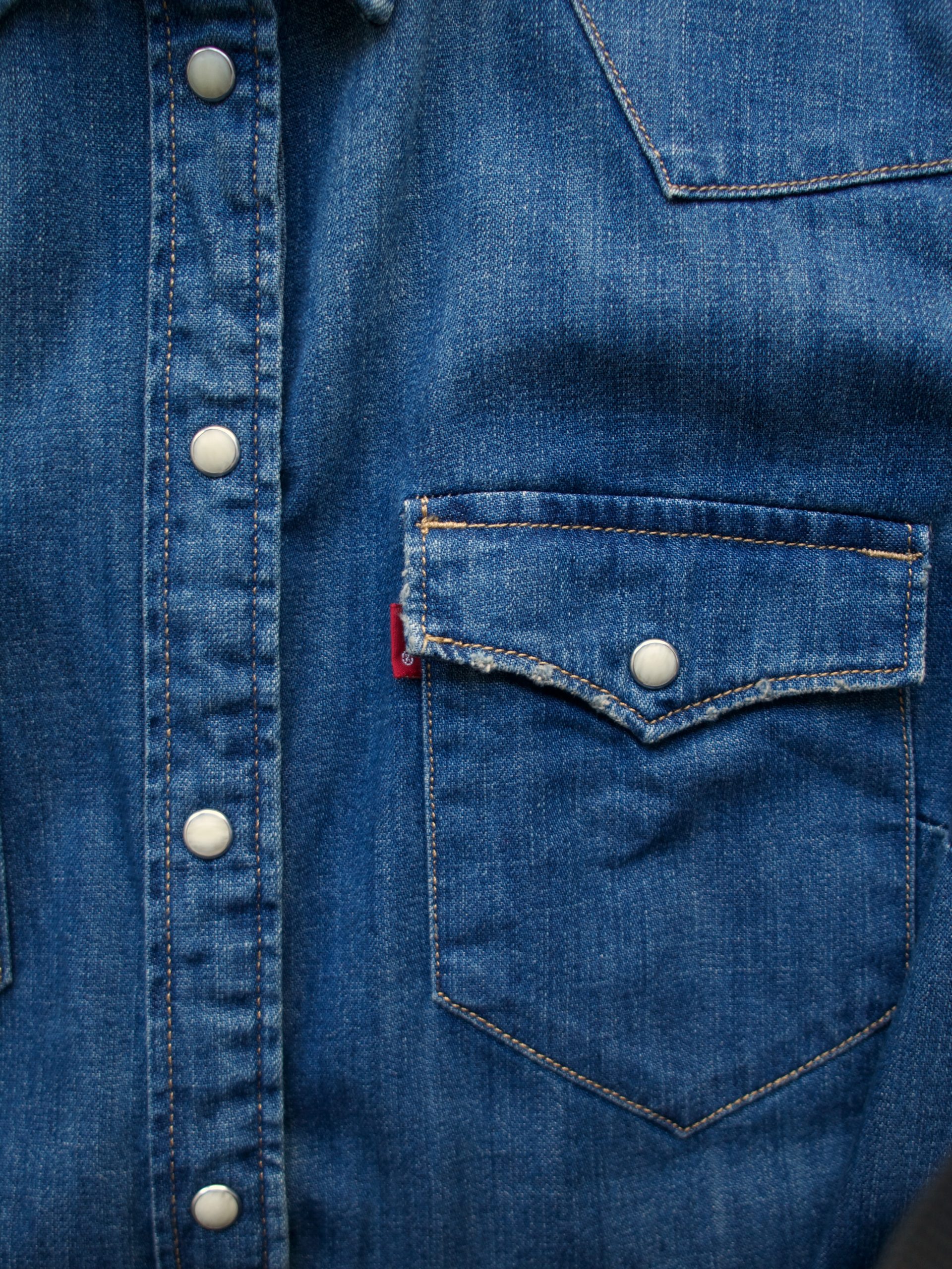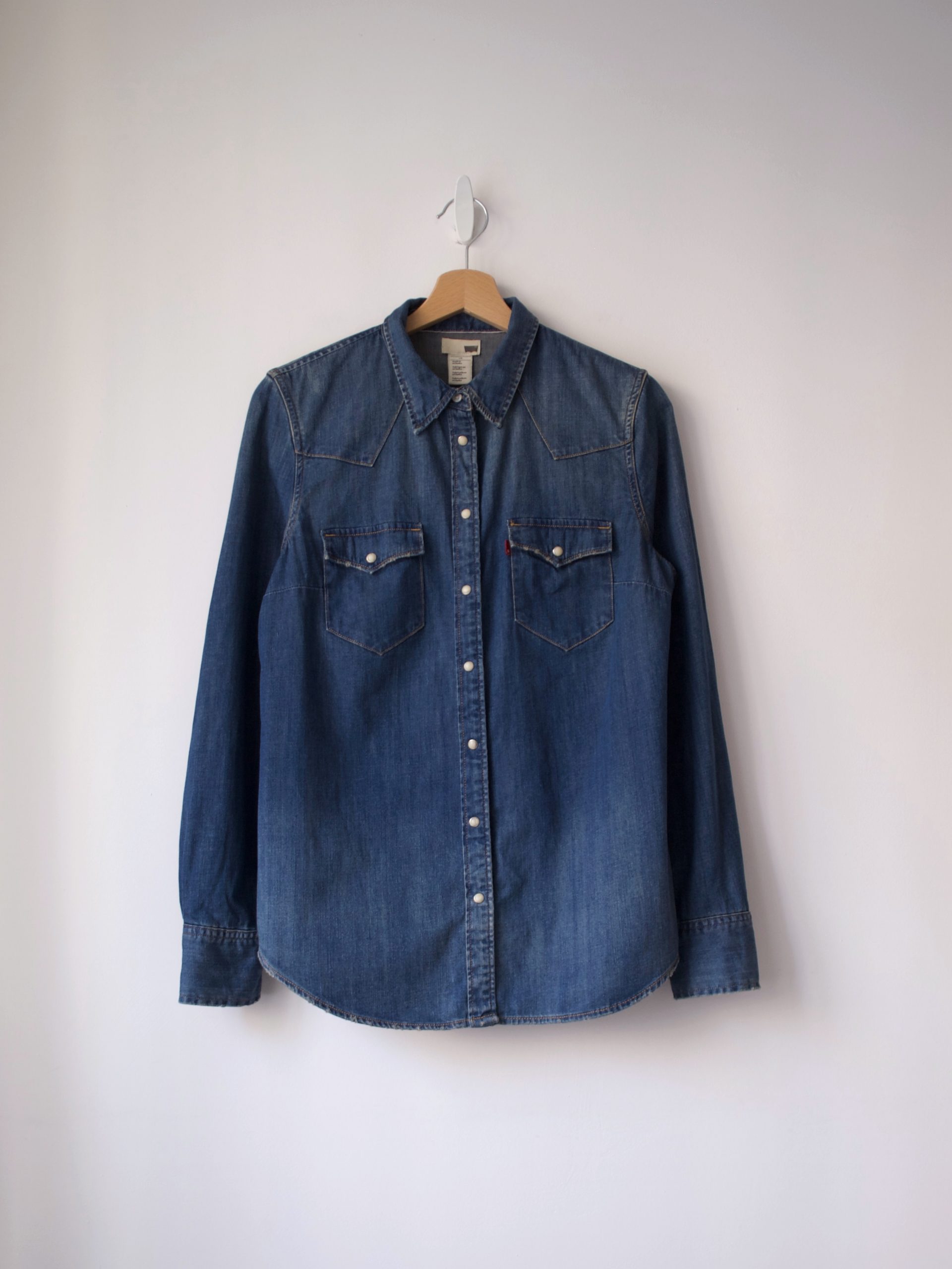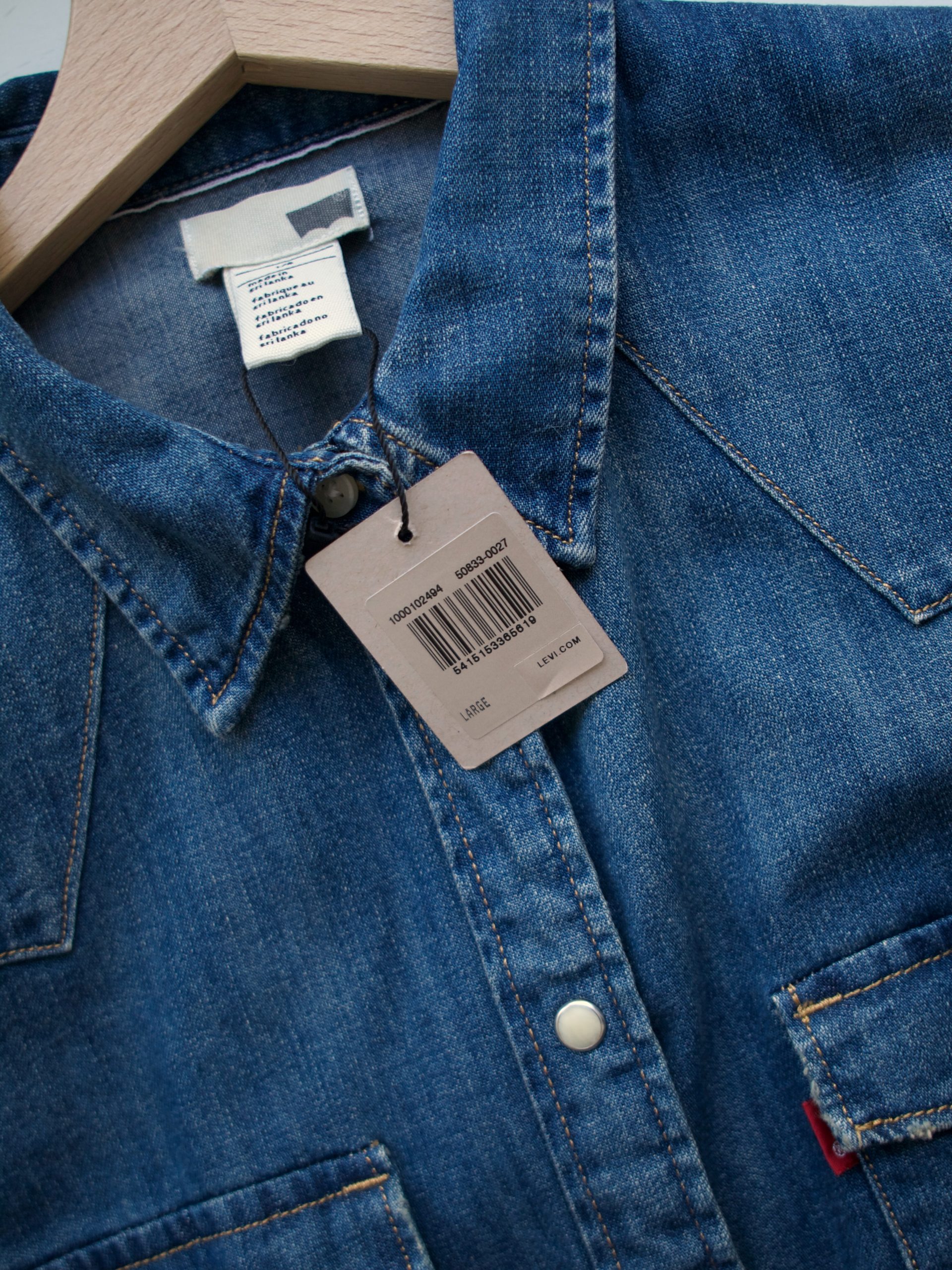 Jeansowa koszula marki Levi’s. Rozmiar z metki: L Skład: 100% bawełna Stan: nowa z metką Szerokość w klatce 50 cm Długość całkowita 67 cm