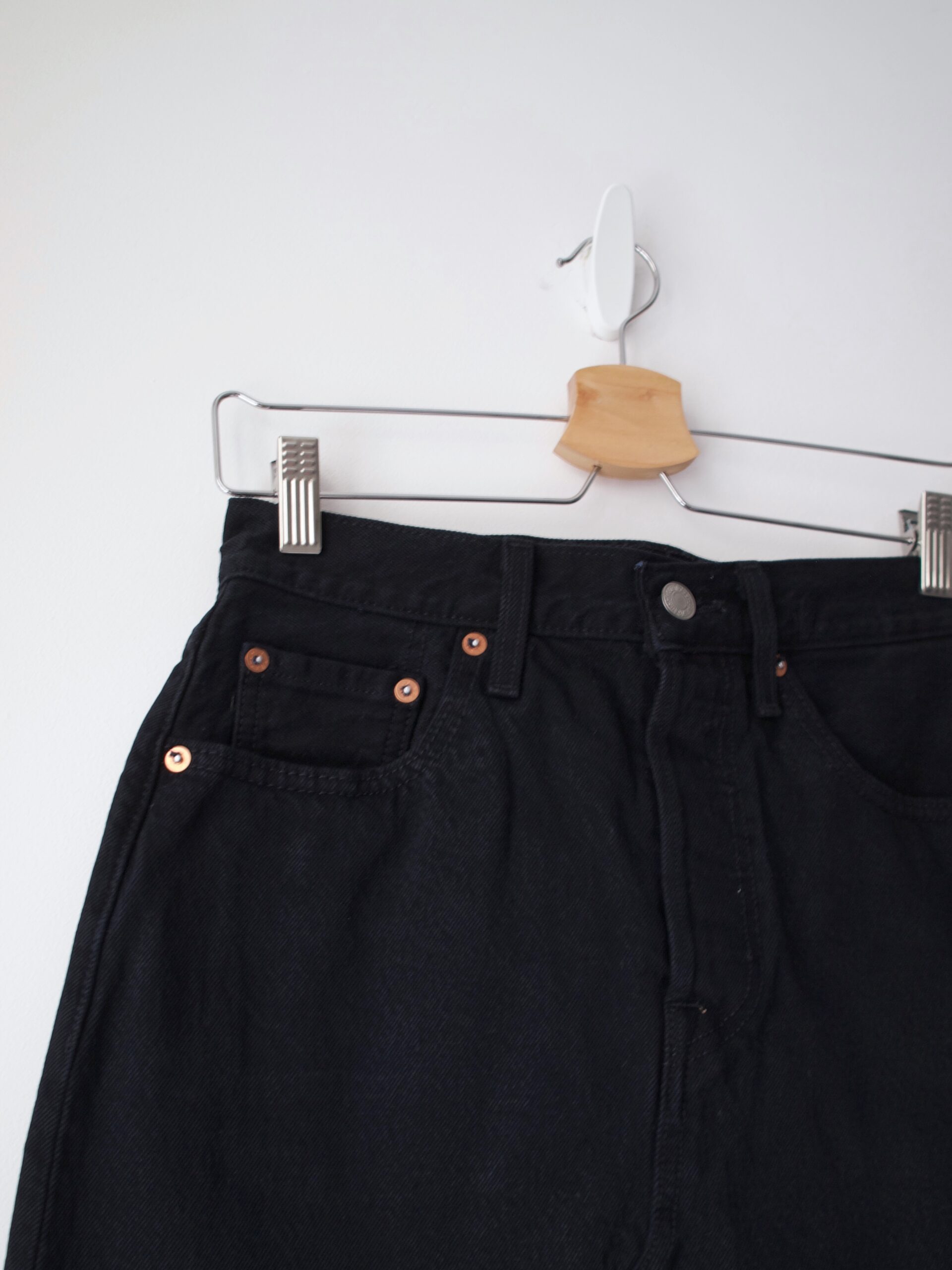 Unikatowe jeansy vintage, wykonane z grubego denimu. Wysoki stan, zapięcie na guziki, zawężana talia (polecam na talię max. 70 cm), bardzo szerokie nogawki. Modelka ma 165 cm wzrostu i nosi rozmiar xs-s. Bez wad.