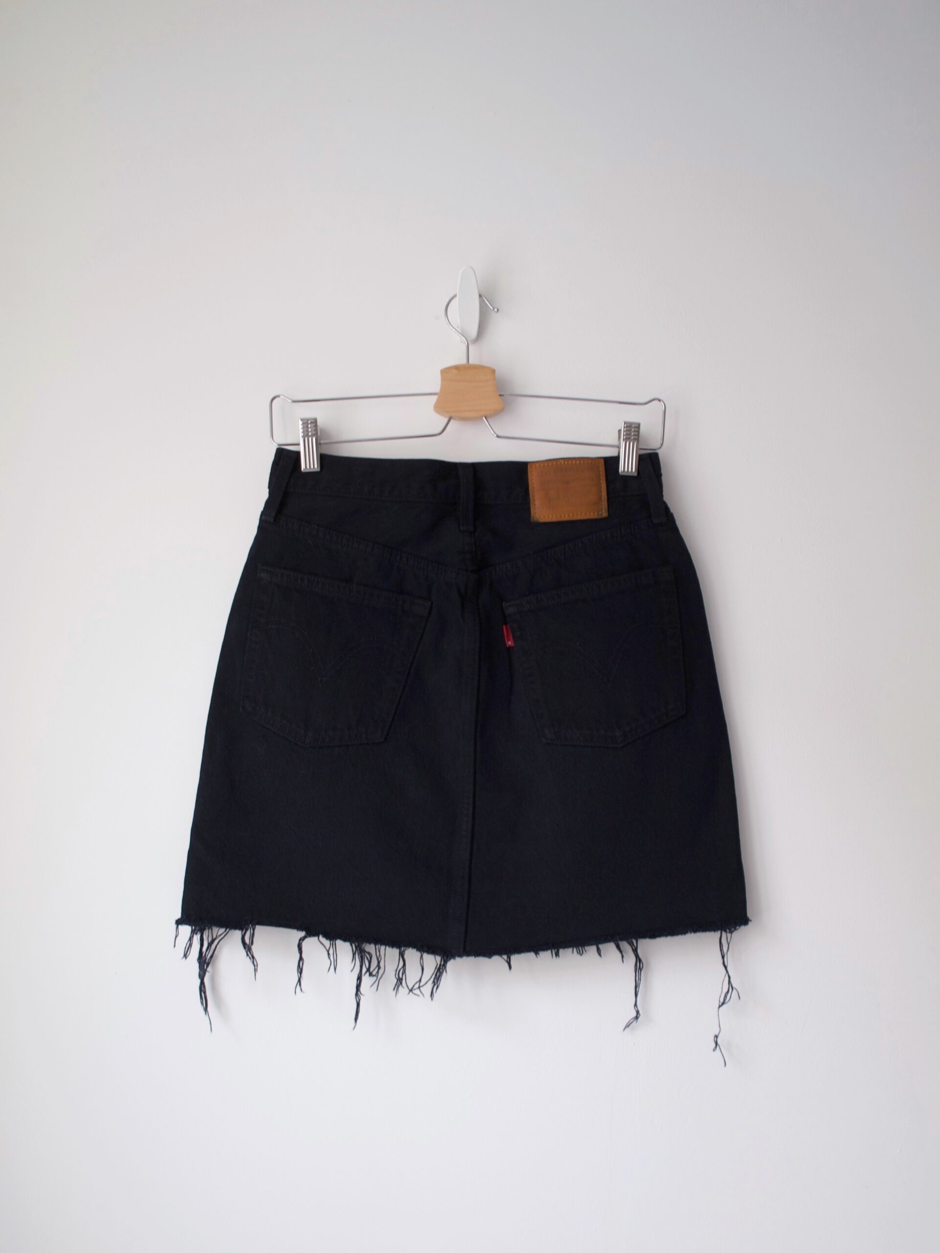 Spódnica wykonana z materiału z dużym dodatkiem lnu. Na całej długości zapinana na guziki, w pasie gumka, dwie kieszenie. Rozmiar z metki M, będzie dobra także na S. Wymiary poniżej, bez wad.